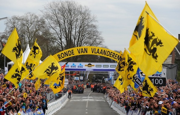 Bandiere gialle ce ne erano tante oggi, sui muri antichi e insidiosi del Giro delle Fiandre, con il leggendario leone rampante che veglia da sempre sulle grida del pubblico e sui denti stretti dei corridori. Si balla, sì, sotto quelle bandiere gialle. Si balla tremendamente sul pavè sconnesso, aggrappati a una strada diritta e in salita, dove non si possono perdere nemmeno pochi centimetri, dove i piedi non possono smettere di mulinare, altrimenti qualcun altro lo farà di più. Niente Piper sul Koppenberg o sul Vecchio Kwaremont: le ragazze in minigonna qui sono i brevi tratti a lato della strada che non hanno la tortura dei sassi aguzzi. E ce ne sono veramente pochi, quando li si incontra sembrano un breve sorso di salvezza.