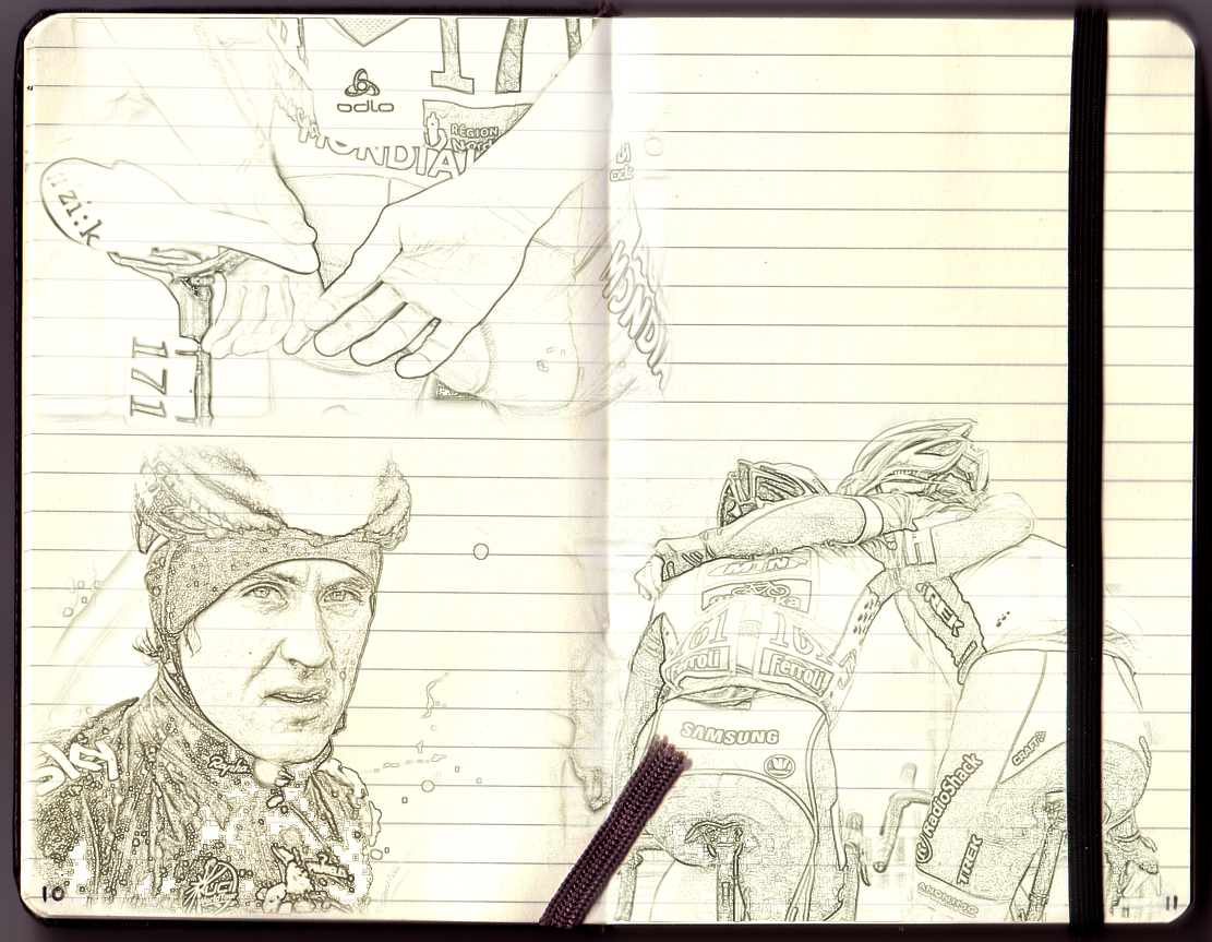 Non fa fatica il ciclismo a entrare dentro, innocente e fragoroso come il passo di un bambino, non fa fatica a trascinarti con lui: voci, grida, gente contenta. Mi manca tutto di questa stagione e so che queste righe assomigliano un po’ a quelle che scrivo sul Moleskine tra gli appuntamenti e le cose da fare: stralci di quello che siamo, diari inusuali e non voluti. Brevi momenti francobollati su carta, come nella mente.