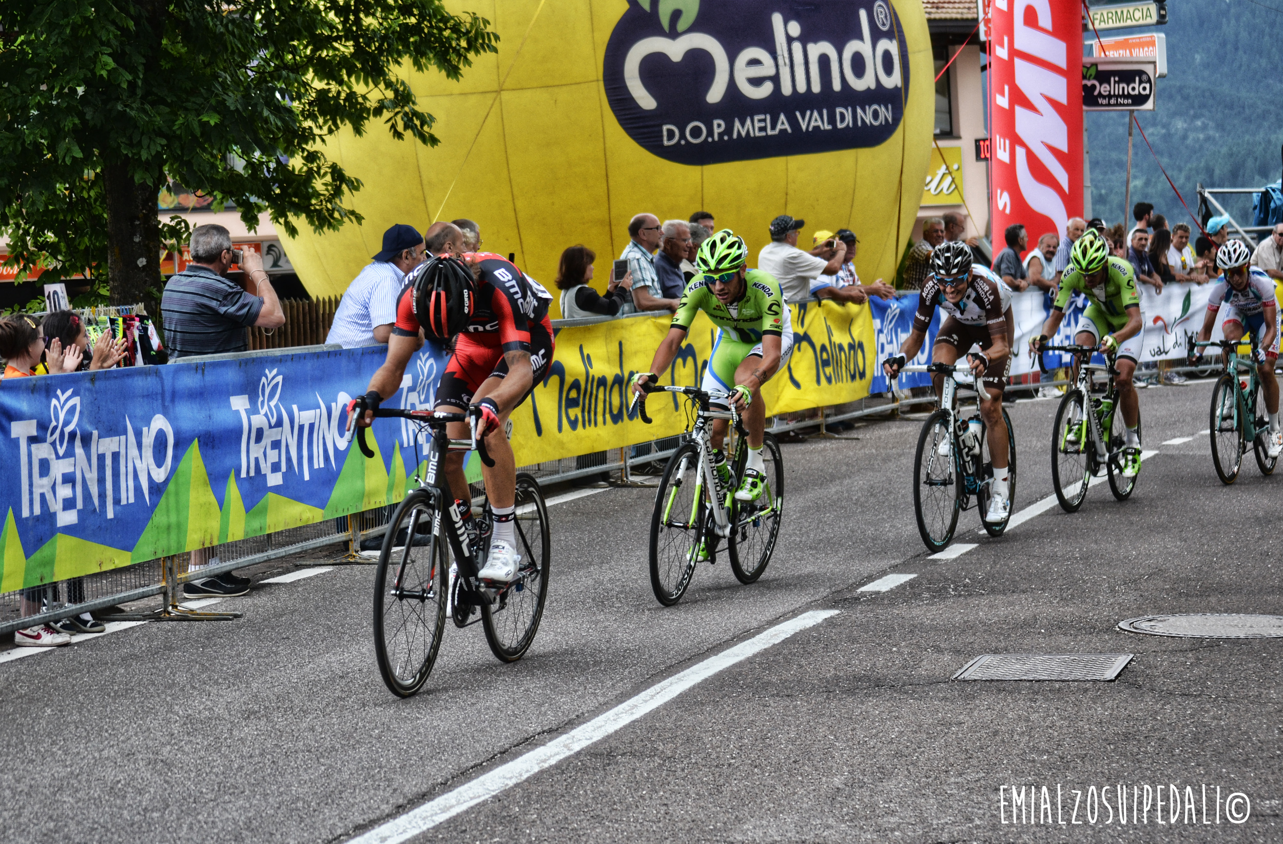 Sul traguardo di Fondo, pochi metri dopo la linea d’arrivo, mentre i corridori stanno percorrendo l’ultimo giro penso alle quattro ore di macchina che ho fatto per arrivare qui e al tempo che ci ha graziato. Davano pioggia, invece il Campionato Italiano si è corso sotto il sole che, tra qualche nuvola, illuminava le distese infinite di meleti in queste valli. Penso che Daniel Oss con la sua azione, con il suo essere solo con sé stesso e le sue gambe, senza una squadra, completamente outsider, mi ha fatto rivivere quella pazza corsa sulla strada che porta su al Vajont di un anno fa. Come quella volta ha inseguito il suo sogno senza risparmiarsi.