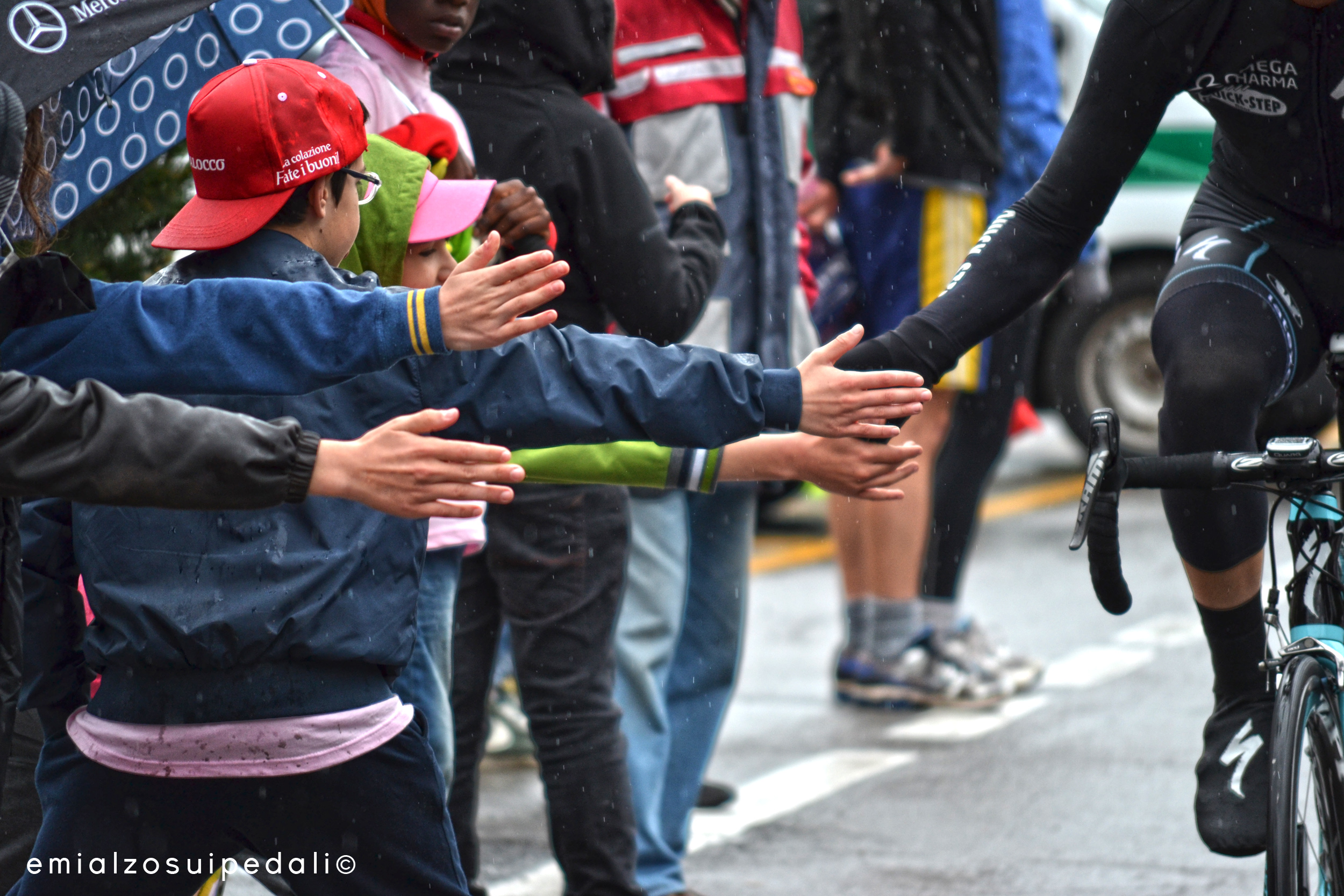 Son cose che mi hanno messo radici fin da bambina. Piccole radici attorno agli organi vitali, aggrappate come l’edera sui muri. Non ho mai capito il perché. Aspetto da una vita, con una pazienza e una tenacia che a volte stupisce anche me stessa. Ascolto da una vita. Tutto e sempre di più. I frammenti di certi dialoghi ogni tanto tornano a galla, anche se sono passati anni. Aspettare, nel ciclismo, ha un senso tutto suo. E credo che non ci sia un’attesa spiegata meglio che questa qui. Ore e ore nello stesso punto, attaccati a una transenna, seduti su un marciapiede, per vedere un passaggio. Il tempo, quel tempo vuoto che sacrifichiamo per un qualcosa di importante, diventa stranamente pieno. Aspettare si trasforma in un rito.