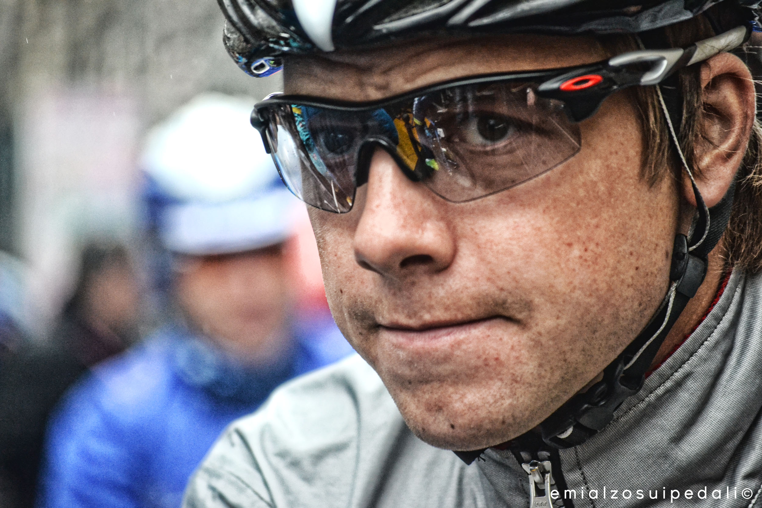 Poche voci, pochi suoni riescono a rompere i pensieri che sono tutti tesi là, verso quei duecentonovanta chilometri da percorrere tutti in un giorno, tutti in bicicletta. La Milano Sanremo, un sogno senza pietà, dove devi avere le gambe alla fine e non è una cosa troppo semplice. La gente mormora i suoi favoriti. C’è Cancellara, c’è Sagan. C’è Degenkolb. E’ strano: in lui alcuni ci credono senza remore, altri poco, quasi niente. Vie di mezzo non sembra ci siano. Quando l’ho visto vincere al Dubai Tour ho pensato che con quella cattiveria, con quella devozione al sacrificio di resistere nonostante tutto si sarebbe preso la Sanremo. Questa luce bianca rende i suoi occhi grigi ancor più trasparenti, quasi liquidi per il silenzio che li attraversa.