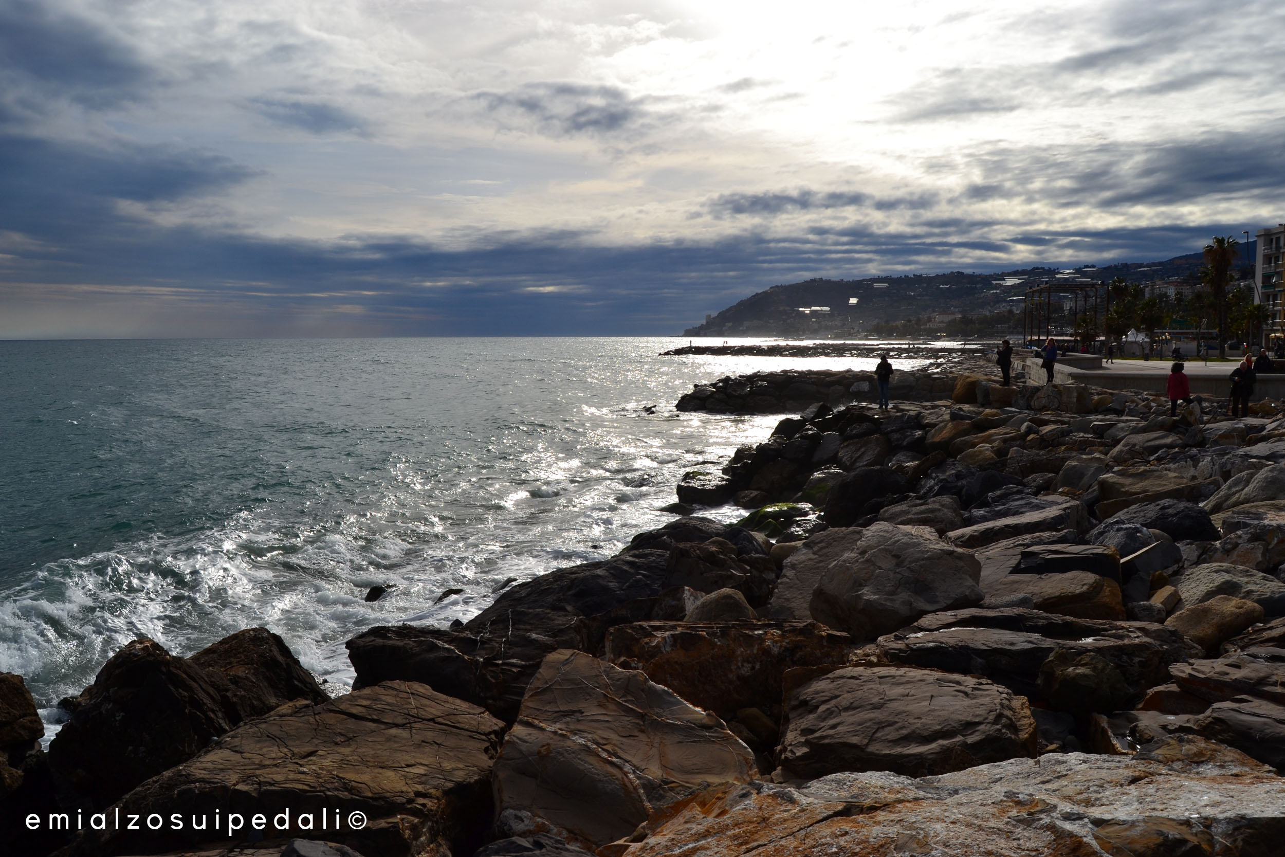 Dopo mezzogiorno smette, dicevano. Invece continua a piovere, persino su questa strada alla quale sono affezionata perché mi sembra sempre che porti verso il sole. Il tempo cambia in fretta e dopo il Turchino c’è sempre un po’ di azzurro. Oggi no. Il mare si vede appena, è grigio come il cielo. Ancora chilometri da fare, per me, per loro. Ragazzi lucidi di pioggia, sporchi del fango che vien su dalla strada, dalla terra che attraversano. A Sanremo qualcosa si calma, non piove più anche se dal mare sale un vento che scompiglia i capelli e fa spumeggiare le onde sugli scogli. Bianco e poi verde, azzurro. Blu là in fondo, sull’orizzonte che si sta schiarendo. Forse uscirà il sole. Tra i vicoli si sente la telecronaca, viene dall’arrivo, viene dagli altoparlanti, viene dai bar. Questo è uno dei pochi posti al mondo dove la corsa si sente ovunque.