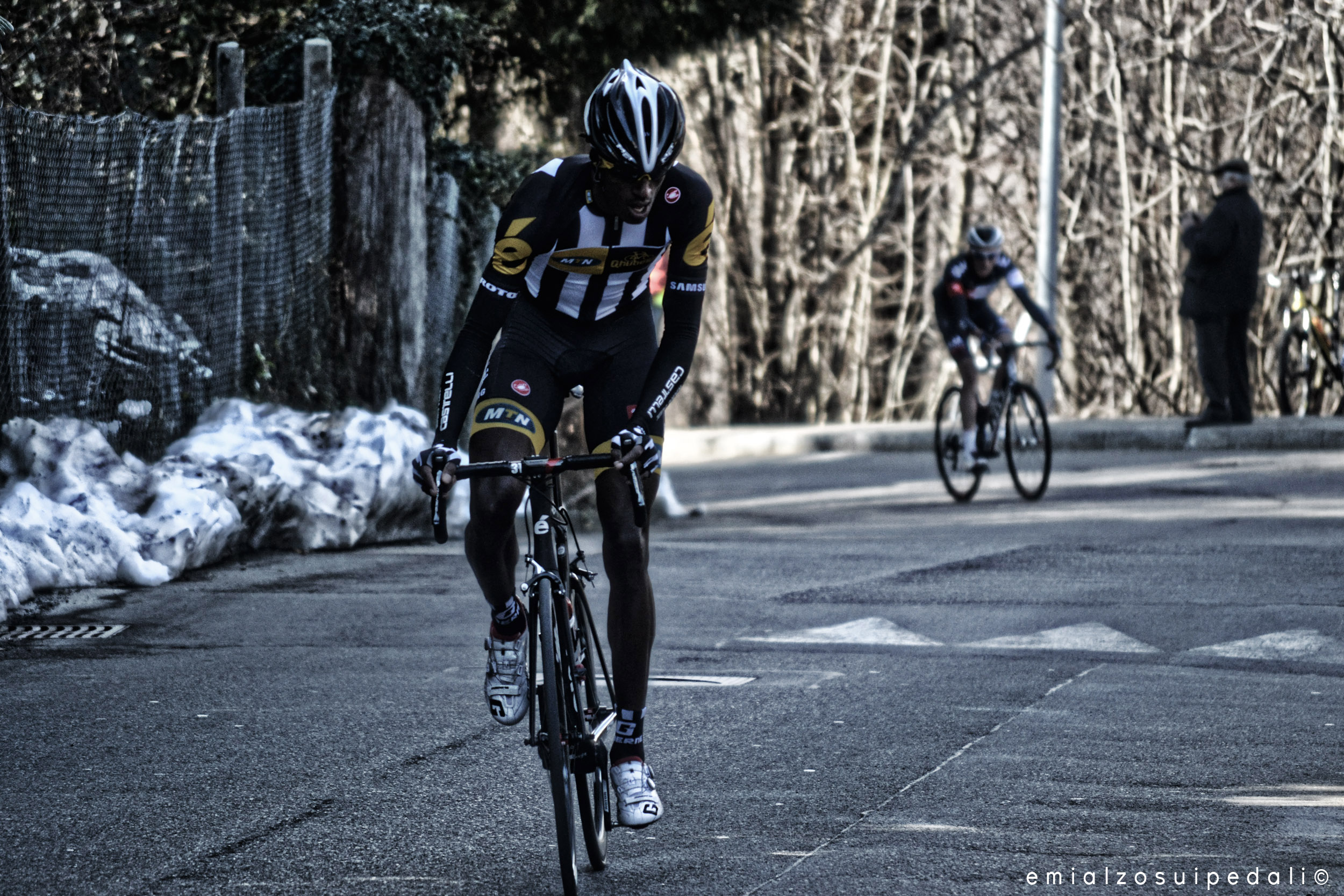 La neve sulle montagne lontane e un fan club riunito sul GPM. Pane, salame e vino. E bandierine. All’ombra fa ancora freddo ma c’è il sole a salvare tutto. Il passaggio. C’è Teklehaimanot, gazzella abituata alle montagne, le gambe lucide e magre. Poi il gruppo e ancora in picchiata verso la città, verso il lago.