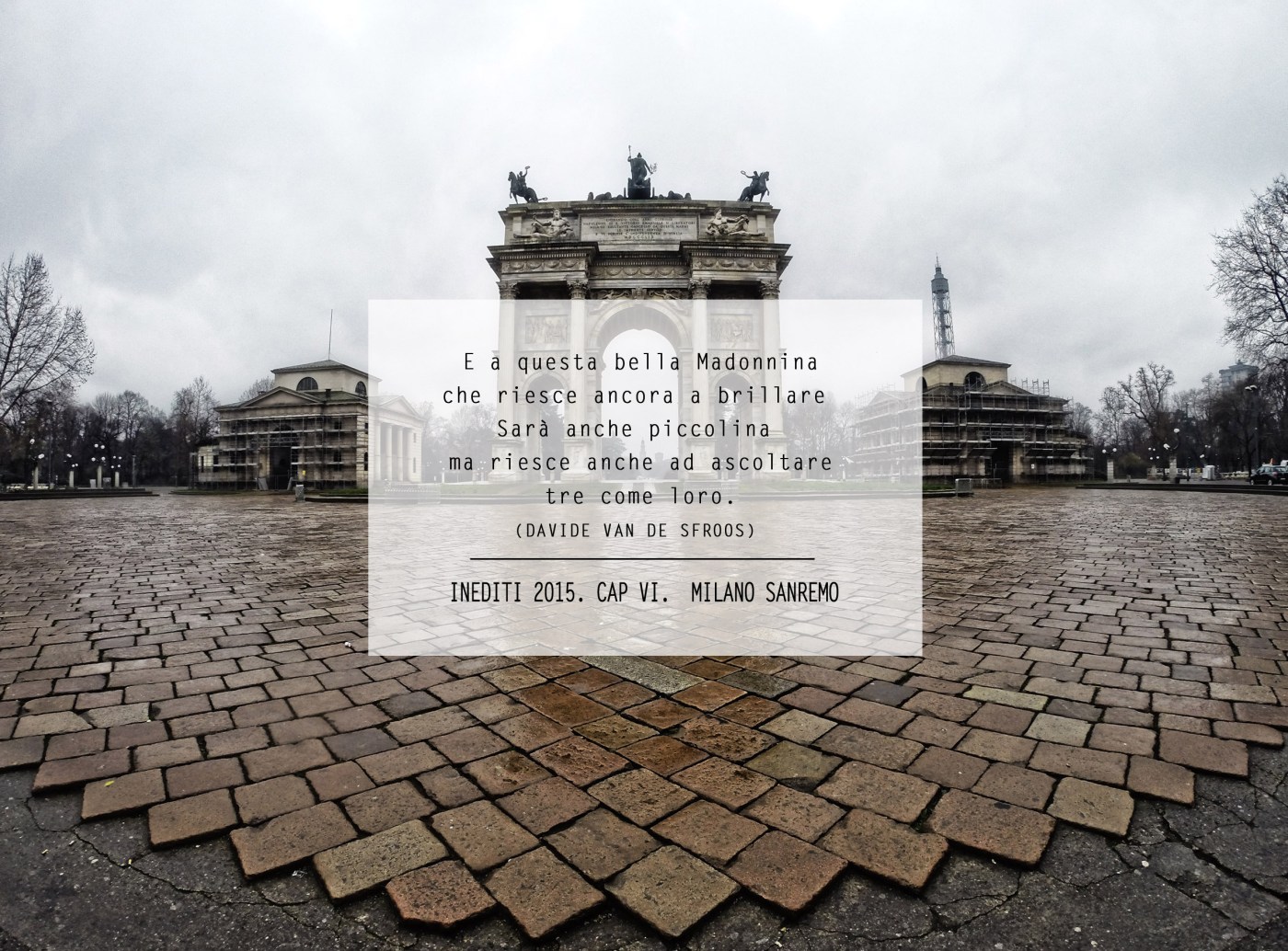 Milan. C’è l’odore caldo dei caffè che viene dai bar, delle brioches con la marmellata bollente. C’è il cielo livido e senza colore, complice di quella pioggia invisibile e sottile. Vento gelido, vento del nord che si infila dappertutto. Il pavé lucido di Corso Sempione, gli alberi neri e fradici e spogli. L’arco della Pace con Minerva e le Vittorie in bronzo che si disegnano contro il cielo di nuvole.