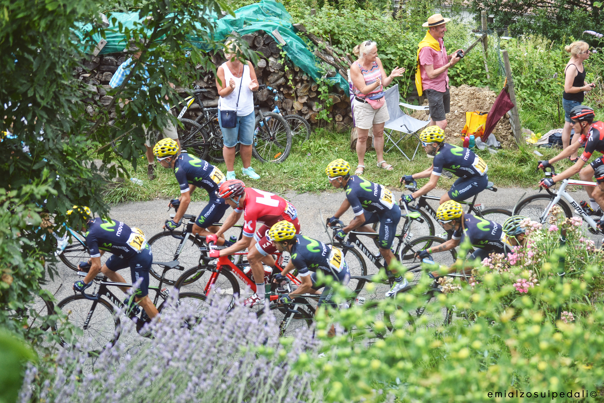 Il Tour de France passa su questo tornante tra le lavande e un piccolo orto a terrazze. E neanche vedere la maglia gialla lì in mezzo riesce a convincermi che esista davvero un elite o un criterio che non siano i soldi per definire una corsa migliore o peggiore. Tutte hanno lo stesso destino. E non è certo quello dei buffet privati dove ingozzarsi nell’attesa di vedere l’arrivo.