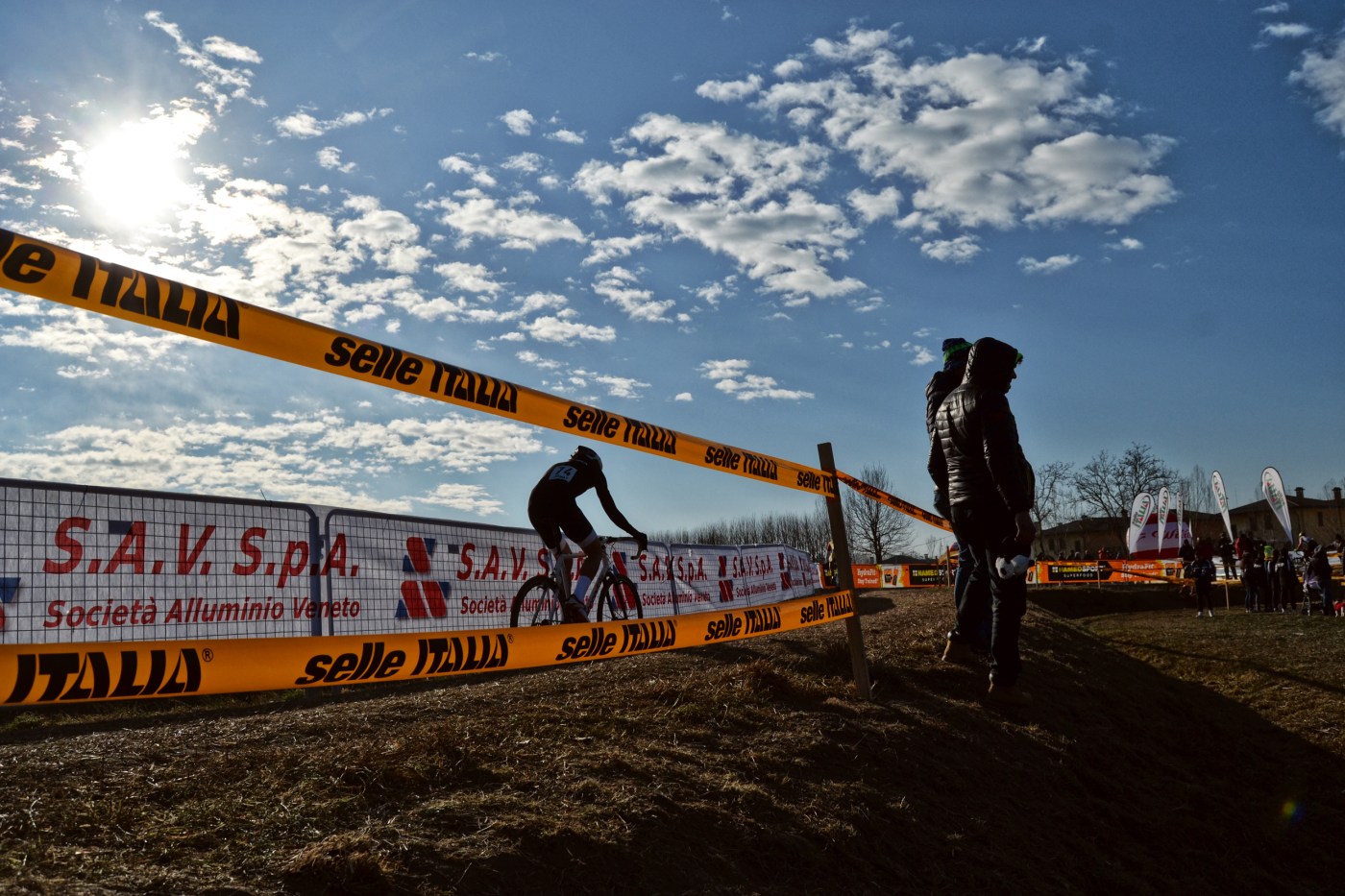 Che questo non è il solito ciclocross si vede subito e si rimane pure un po’ spaesati. C’è odore di vin brulè che spezza il gelo, i fettucciati sono peggio che un labirinto, i campi sono polverosi e secchi per metà, il resto è ancora coperto dalla brina e aspetta paziente che il sole trasformi tutto in fango.