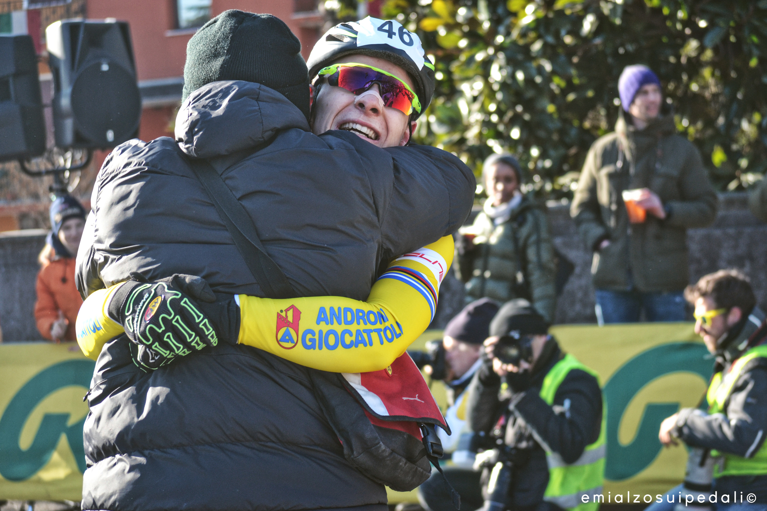 Basta vedere Paolo Guerciotti che si fionda sull’arrivo inseguito dagli insulti di quello della sicurezza. Vuole abbracciare il suo Jakob, vuole farlo subito prima di tutti gli altri. No, è vero, non si può stare lì in mezzo, ma cosa vuoi fare in quei momenti lì? Piangi, gridi e ti incazzi anche facilmente, qualcuno ti spinge, qualcuno ti stringe. Benedetta linea bianca, è sempre la solita storia.