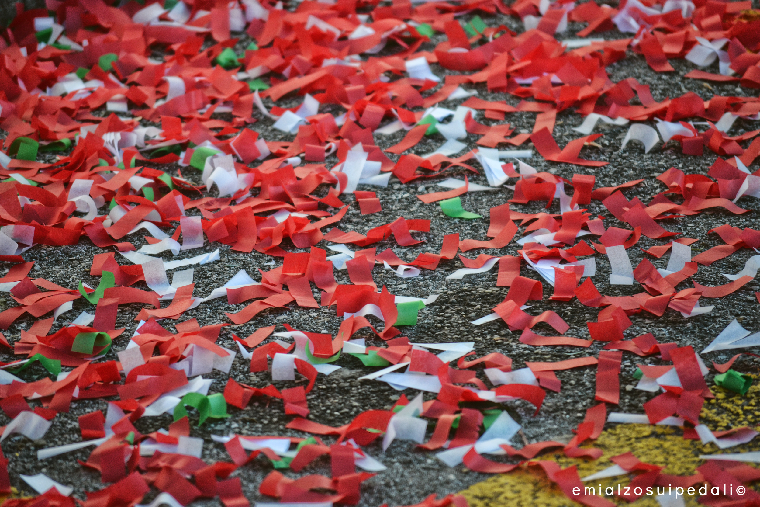 Una pioggia di coriandoli tricolore e un sole rotondo e rosso mi accompagnano a casa. Scivola giù verso l’orizzonte piatto che scorre verso
