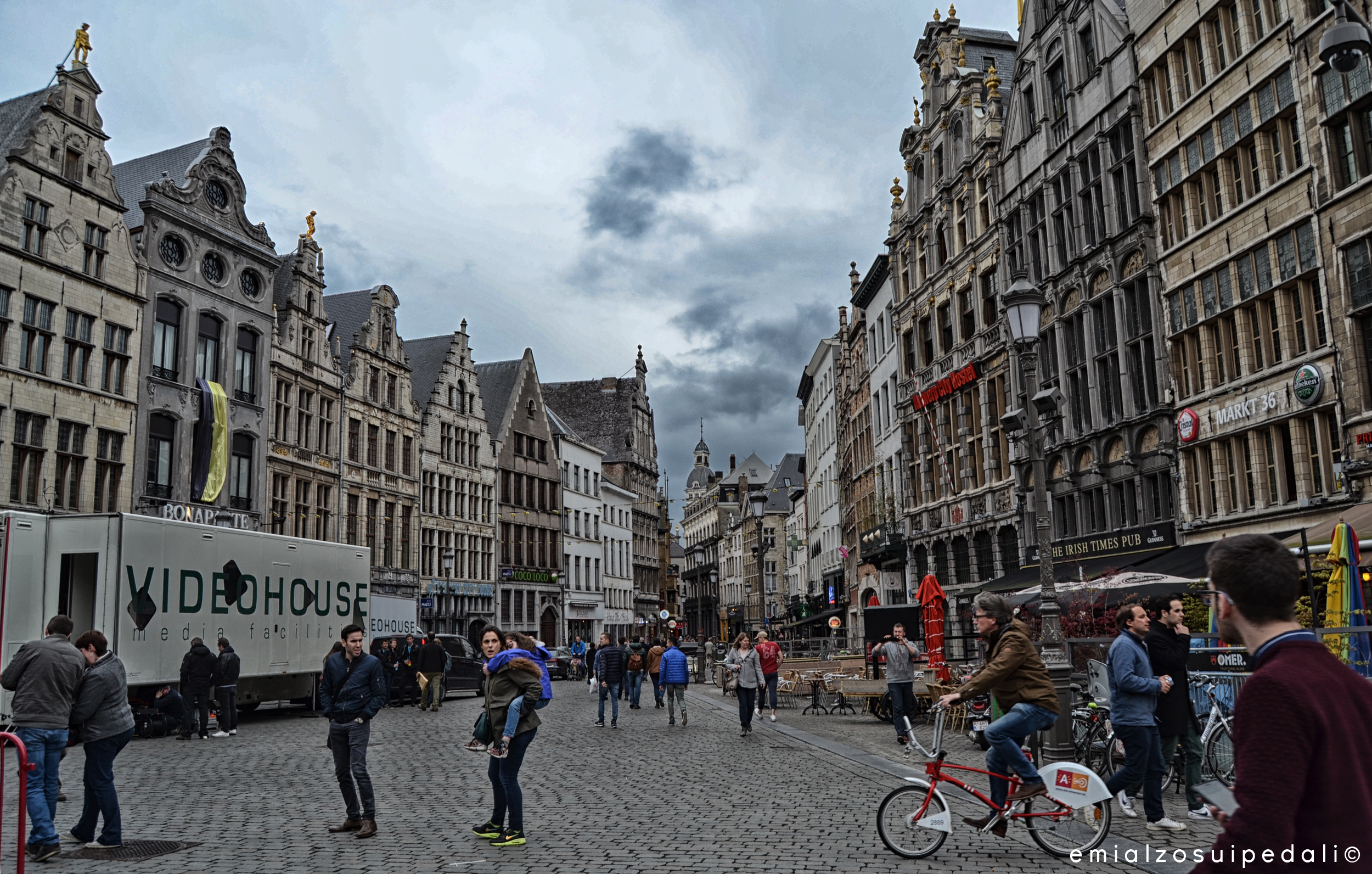 Anversa non è una città di mare, è una di quelle del nord che sembra uscita da un racconto. Le case alte, vicine, con i cornicioni d’oro e le finestre con gli infissi colorati e le vetrine delle cioccolaterie e le bici legate ai lampioni lungo l’acciottolato del centro. Sventolano le bandiere gialle con il Leone delle Fiandre, la gente si accalca nei negozi con gli scaffali colorati dalle birre. Sono i riti della vigilia. E’ il Belgio di cui ti innamori senza accorgertene, come succede con gli amori più veri. Torni a casa e ti accorgi che ti manca, ti manca davvero.