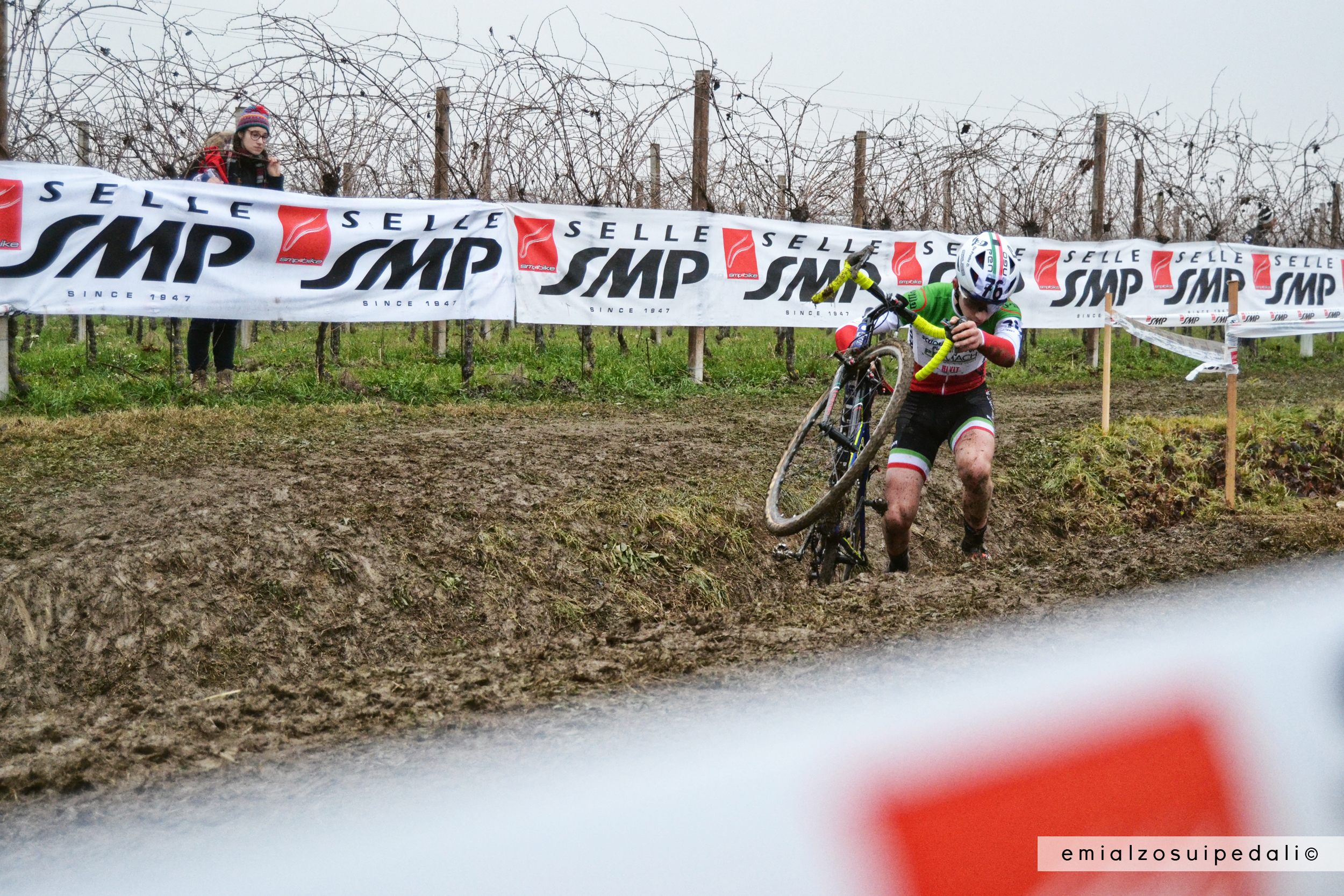 Piove. Una pioggia sottile che neanche si vede. Nei canali fluttuano le alghe verdi come se fossero serpenti imprigionati e vivi, come capelli, come se volessero cantare e sono muti, continuano a sgusciare nella corrente, anguille senza pace che restano lì, guardano il cielo bianco dal fondo dei loro argini alti. Il ciclocross ha l’anima rigida dell’inverno, un po’ le somiglia, un po’ ci si scontra, come succede con le cose che amiamo profondamente. Benedizioni e bestemmie, ogni volta e per sempre. La bicicletta da portare in spalla come una croce, il cricchiare della fanghiglia sotto i denti quando cadi e ti mangi il fango, questo fango qui fradicio dei campi, dei vigneti tranquilli che si distendono a perdita d’occhio sull’orizzonte piano.