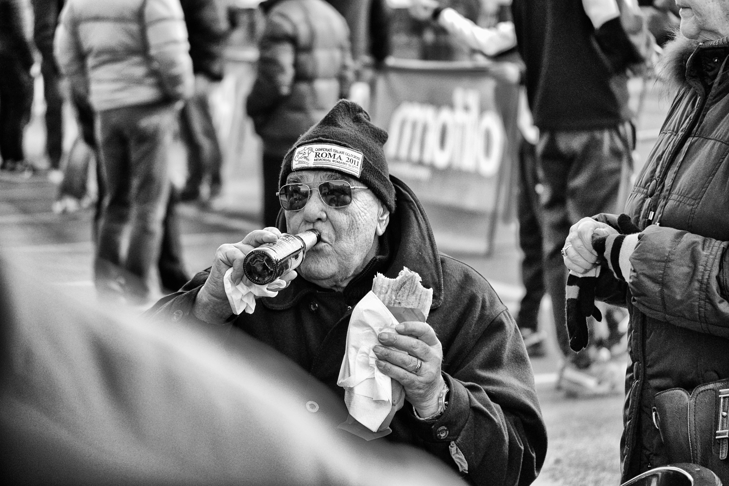 Parla come mangi. Beanie alla fine significa berretto: sì lui, il classico berrettone di lana e attenzione perché qui le dimensioni contano. Intendo il pompon naturalmente, che deve essere e-s-a-g-e-r-a-t-o. Come un ricco si distingue dal Rolex autentico, così la gente del ciclocross si riconosce da questo che è un vero status simbol, cioè vuol dire “sono del club”. Nessuno ancora sa dire chi abbia lanciato questa moda ma forse, senza troppa poesia, era solo uno che aveva bisogno di tenersi la testa al caldo.
