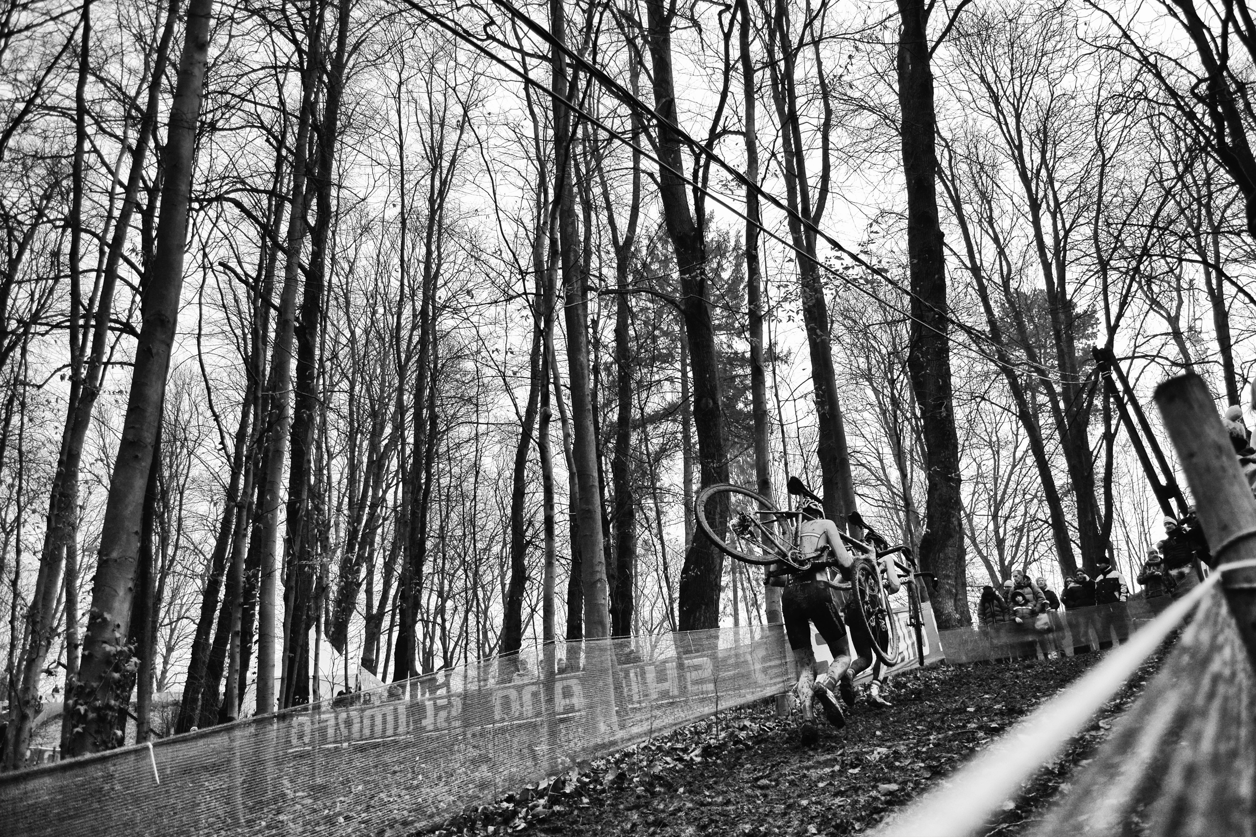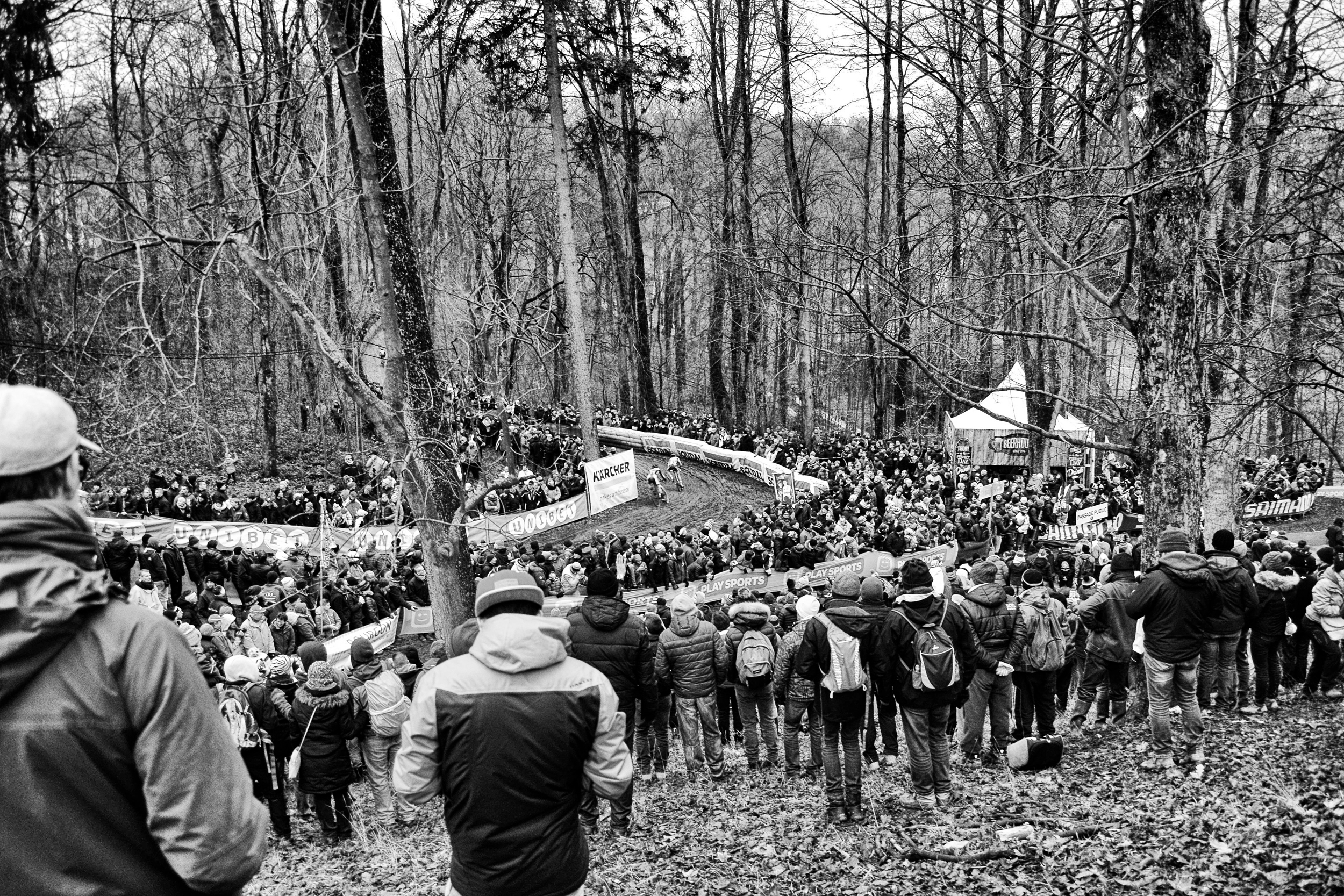 Diciamo che non è così facile avere voglia di una birra ghiacciata in pieno inverno, in aperta campagna, con il bosco che ti alita l’umido in faccia. Ma i belgi sono persone a parte nell’intero universo – per fortuna – e la loro birra ha il sapore pastoso del carattere fiammingo, roccioso e appassionato, come quello dei rivoluzionari. Il ciclismo e il luppolo in fondo sono fatti della stessa pasta, una tradizione antica, come l’attaccamento alla squadra. Solo che qui non ci sono fazioni. Solo che qui l’alito caldo della gente che si disperde nella sera quando si corre l’ultima gara, sa di birra, sotto il palato, nella testa. Quell’odore lì è quello della nuca di chi ami, la nuca sudata del ciclismo selvaggio. La leccheresti fino a consumarti la lingua.