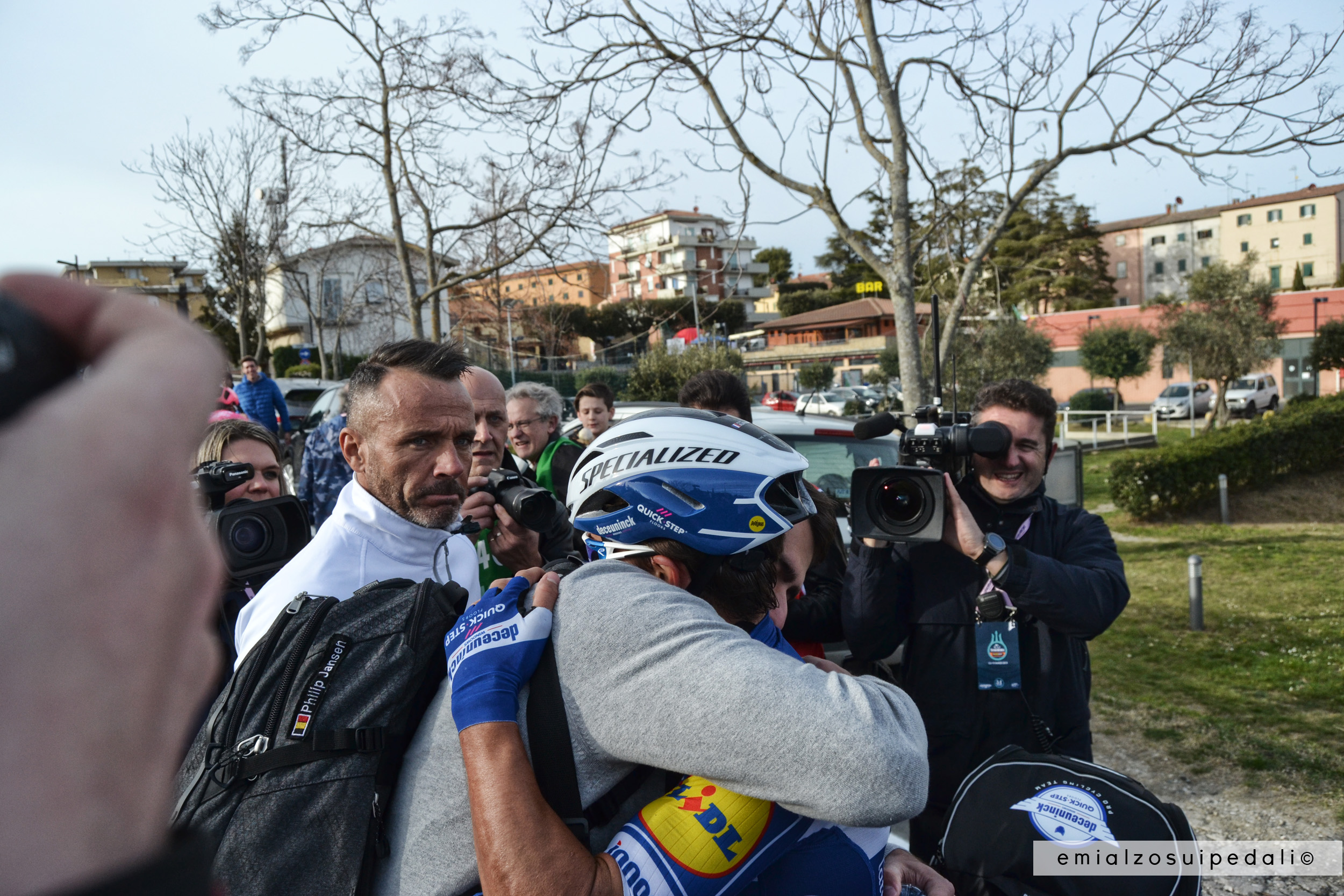 I ciclisti passano come il treno nella campagna, la meraviglia squillante delle tre e mezza, con la gente che guarda giù dalle finestre, perché il ciclismo è sempre il ciclismo. E uno dice ancora Pantani. Quando aveva fatto la foto con Pantani, tra gli altri, chissà quando. Cicatrice nostra rimasta aperta per sempre, è questo il destino. Passa il treno e tutti restano a guardarlo anche se non sanno niente, da dove viene e dove va. Non sanno che il ciclismo può prendere un arrivo come questo e ribaltarlo, farti in pezzi quando credi che niente può più farlo.