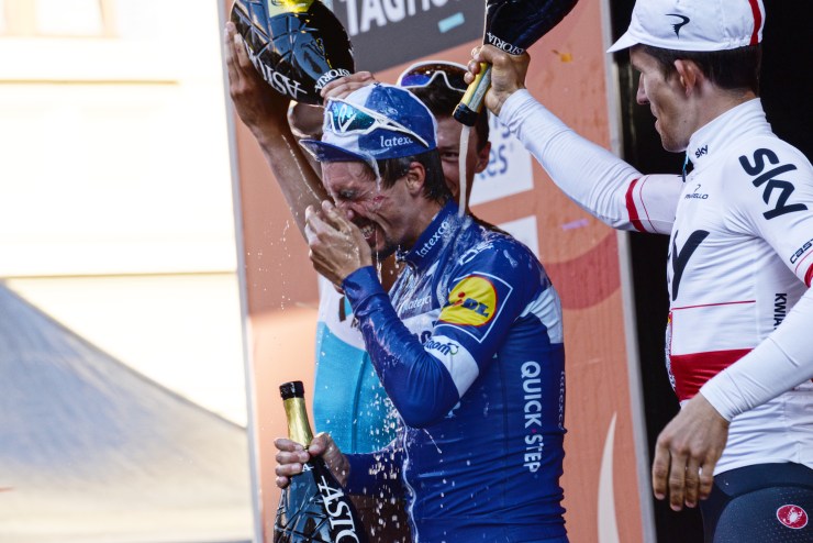 Via Roma è sempre più stretta, per metà nell’ombra e per metà nella luce, come è sempre stato questo sport per me, come sono tagliate a metà le figure dei corridori sulla Cipressa e poi sul Poggio: le vedo male, con il riflesso del sole sullo schermo e le solite venti teste di giornalisti davanti. Ma Julian lo puoi riconoscere anche ad occhi chiusi. Per come sale, per come sembra che qualcuno lo tenga al guinzaglio appena prima di scioglierlo, perché lui lo sa quando deve scattare, lui sa perfettamente quando dovrà farlo. Ma Dio, se la vuole questa corsa. Ed è in quel momento che penso alla lucidità di gestire la potenza, una cosa che ho sempre amato nei finisseur, una cosa che nel ciclismo è un po’ una benedizione. Poi non riesco a vedere più niente, lo speaker dice Alaphilippe e io lo so che in quel momento succede il finimondo. Lui piange e gli altri imprecano, si incastrano con i fotografi, le moto, la gente e chissà cos’altro. E’ sempre più stretta Via Roma che si mangia tutto in un secondo. Sanremo 1992. Non può essere solo un caso.