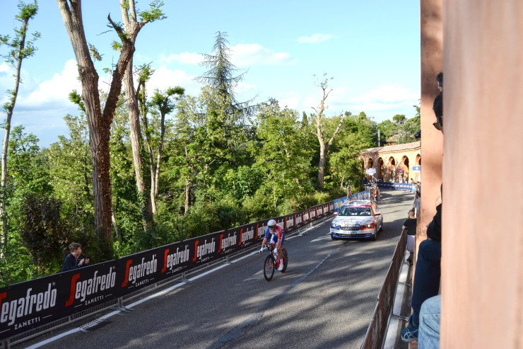 I corridori si piegano sulle appendici, lasciano cadere il sudore come lacrime, e attorno i massaggiatori si affannano per coprirli come madri, ma loro sono altrove, ancora dentro la bolla extraterreste della fatica, dove riecheggia tutto, dove non ti ricordi niente. Un minuto di apnea dalla vita. Morte apparente. E sullo sfondo il Santuario sulla collina, bello sì, ma troppo austero e lontano anni luce da quello che avrei bisogno per sentirmi in pace. Se mio nonno fosse qui, lo abbraccerei soltanto. Tutto il resto, lo capirebbe dai miei occhi, esattamente come sanno fare quelli che ti amano.
