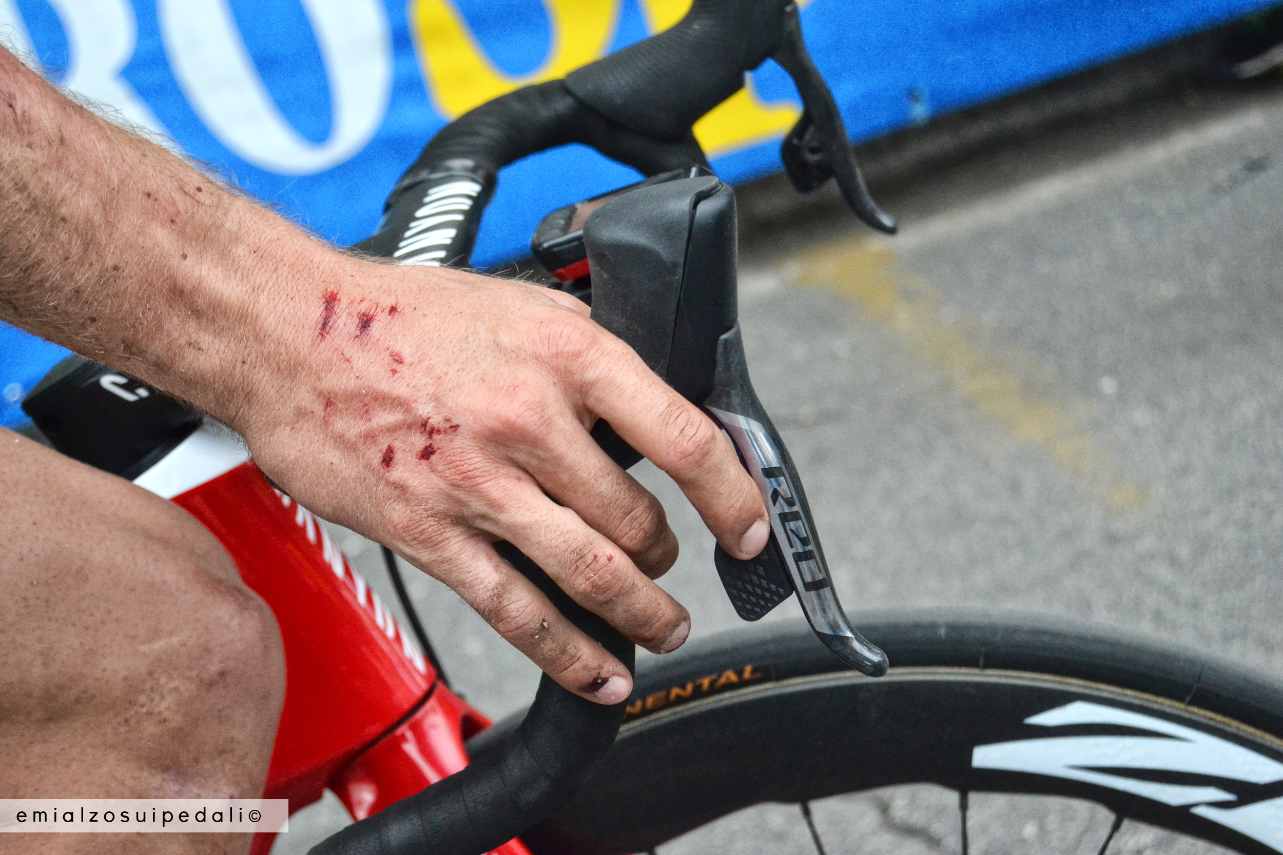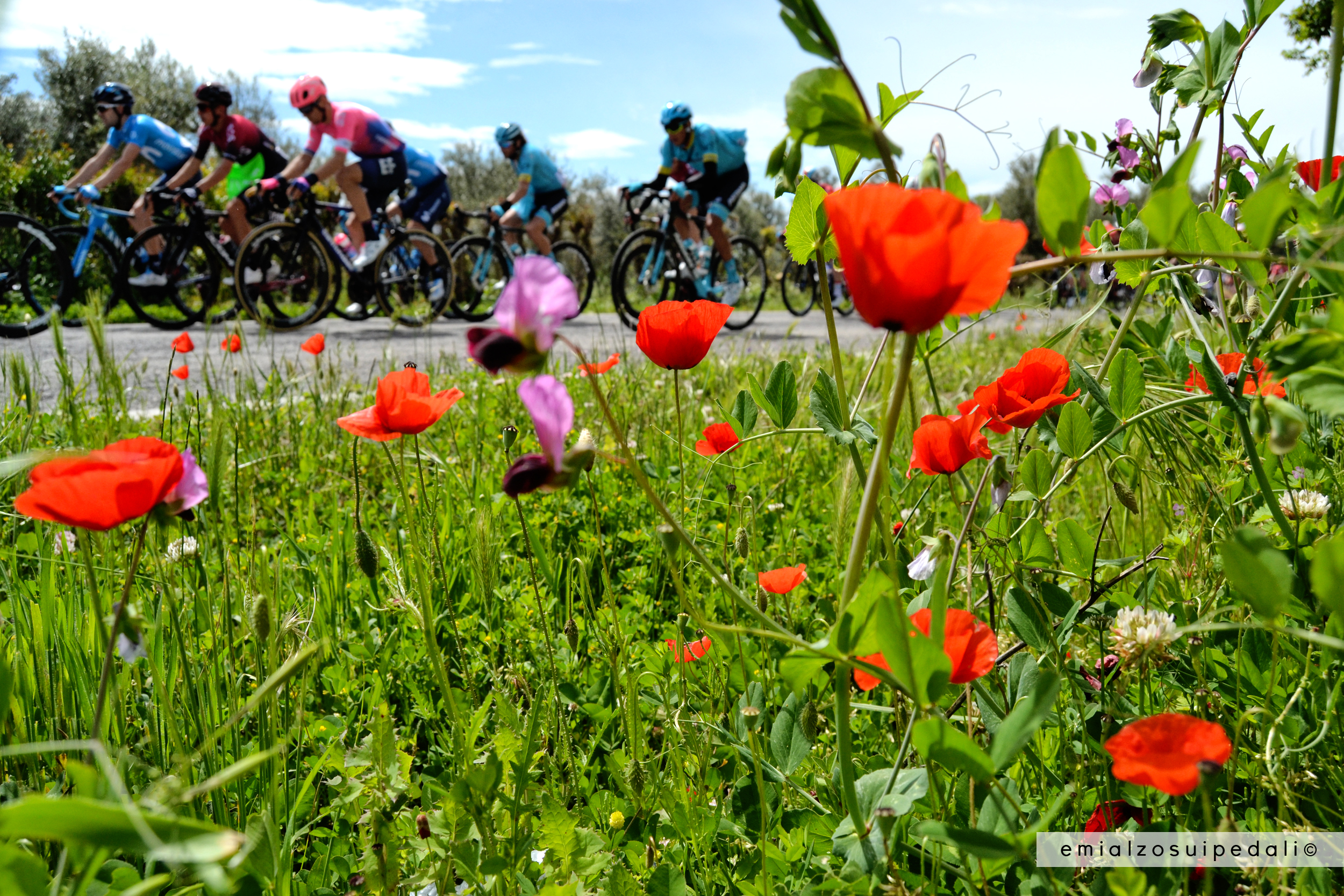 Non mi piace niente. Un tipo sbuca dal nulla, mi dice qualcosa in dialetto che non capisco. Sorrido come una deficiente, non so neanche se è una domanda o un’affermazione. Dico solo che sì, manca ancora un po’ all’arrivo del gruppo. Nuvole bianche striano il cielo azzurro: la corsa è in ritardo di mezz’ora. Sempre così: tutto di fretta per arrivare e poi milioni di infiniti milioni di minuti che scorrono lenti prima del passaggio. Ma che cazzo di problemi ha il tempo? Dai fossi viene l’odore di orto, di erba seccata al sole, spianata dal vento come la felicità dovrebbe spianare le rughe, riportare il sereno. Il gruppo passa, i papaveri sono chiazze rosse nei campi lungo l’autostrada, sopra le nuvole sono grigie come quelle che promettono tempesta.