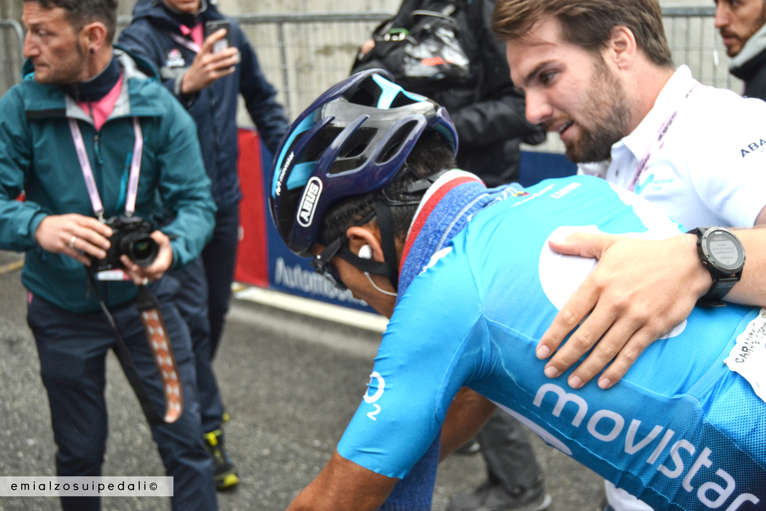 Questa è una tappa durante la quale sembra dover succedere di tutto. Tutti possono scattare, tutti possono cedere. Così succede, infatti. L’unico che sembra fuori da queste regole è Richard Carapaz. Dà dieci metri secchi agli altri e poi niente, poi vola via. Alla gente fa impazzire sta cosa, noi lo sappiamo. Quelli che attaccano, quelli che io li lascio lì e me ne vado. Da un secondo all’altro. E’ per quello che ad ogni curva c’è ancora scritto “Pantani”. A nessuno frega del resto: solo il cuore conta. Come diavolo attacchi, non come vinci.