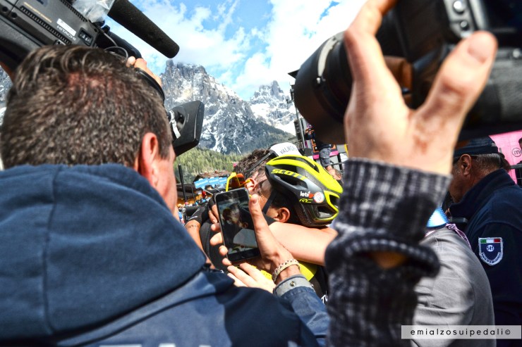 I falsi uccelli neri sui vetri del palazzetto volano contro le Pale di San Martino nella luce immacolata del pomeriggio. Sotto di loro, Chavito sorride, dicendo che quei chilometri erano il riassunto di due anni in cui crederci era la parola d’ordine. Che non si sa mai quando tutti si staccano e tu arrivi primo sul traguardo, devi essere lì. Cazzo, devi essere lì. Un ciclista deve essere affamato, dice, se non hai fame, meglio che questo lavoro non lo fai. Sorrido. Mentre scendo dalla montagna penso alle cime che sono state pane e sofferenza e trionfo, a tutto il duro lavoro che si fa in silenzio, alle cose costruite con pazienza, alle fondamenta solide dei nostri inquieti sogni. A volte non basta scattare, a volte devi scattare ancora. E ancora.