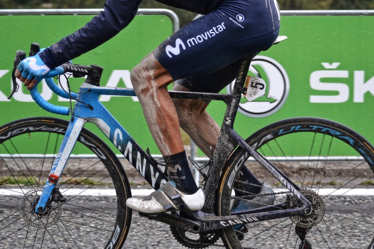 Scendo all’ultimo chilometro mentre l’aria cerca di piegare la gente che aspetta, ha l’odore di un uragano sull’oceano, di una specie di apocalisse. Ma noi, in fondo, le apocalissi siamo abituati a guardarle in faccia, certe volte le creiamo persino noi. Mi siedo sul cordolo della strada, è caldo mentre infuria il vento gelido, mi metto dietro un furgone e cominciano a scendere grosse gocce nell’istante in cui un tipo dell’organizzazione mi dice di salire e ripararmi. Io al caso non ci credo, mi ripeto mentre sono al caldino e fuori scende il cielo e il mondo intero, a pezzi di grandine come vetro nei torrenti delle canaline della strada. Scorre l’acqua e ripenso al Tour e al Col du Télégraphe nel bel mezzo del nulla mentre la sera scendeva tra le montagne. Nessuno sa che nel tratto di sterrato la corsa ha un momento di buio, che i corridori sono soli in un anacronistico ciclocross sui Pirenei, in cui nessuno sa cosa stia succedendo se non loro stessi. E’ così che il ciclismo parla di sé, per una volta, senza mostrare niente. Come ciechi nel buio, noi lo sappiamo cosa vuol dire, essere al limite così, i segni che restano sono i più credibili di tutti: quando arriva la corsa qui all’ultimo chilometro, la pioggia è già altrove, su altre montagne deserte, ma le facce e le gambe hanno il fango per metà seccato che cola sulle gambe e dalla faccia.