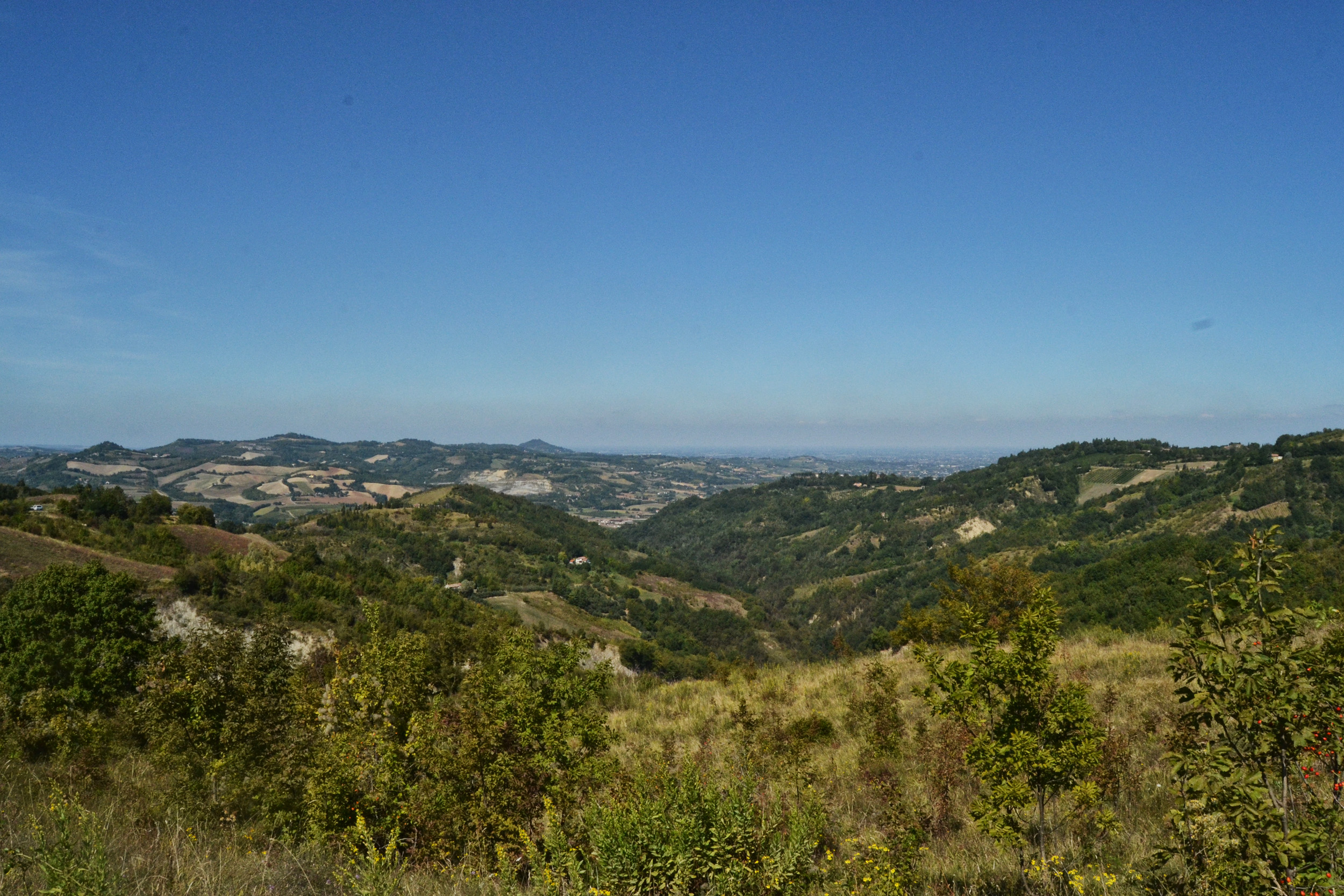 Non ci sono che colline fino all’orizzonte quasi bianco sul cielo azzurro dove l’aria ha rastrellato le nuvole fino a farle diventare invisibili. C’è l’odore degli arbusti seccati dal sole in alta montagna, bacche rosse lucide che guardano la scarpata dove sprofonda la valle vegliata qua e là dai pini.