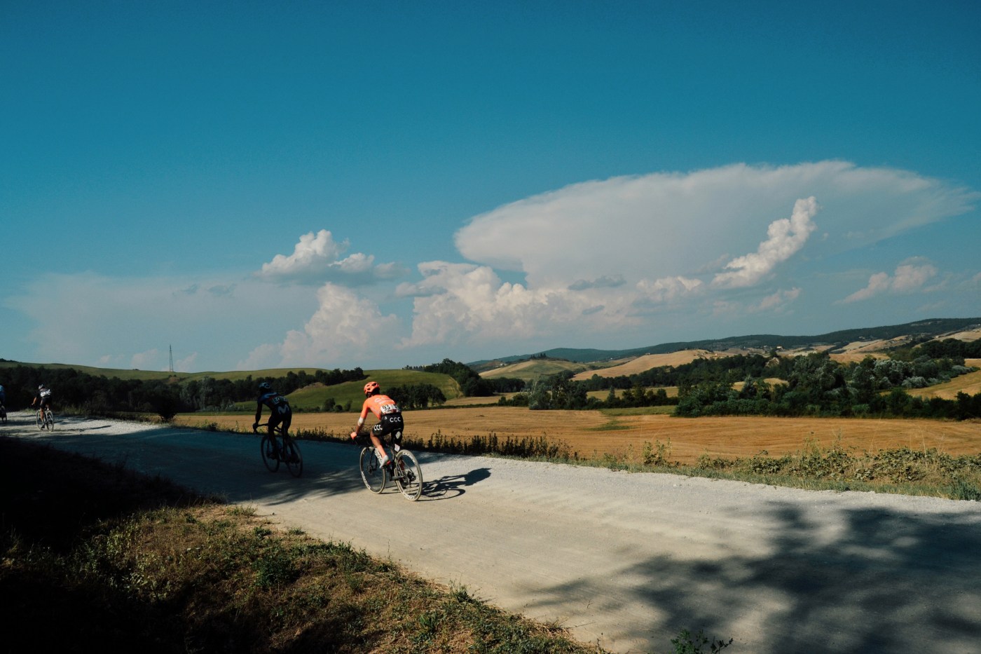 Così immensamente lontano, così ancora irrimediabilmente vicino mentre Sante Marie è dorata nella luce del tardo pomeriggio e l’alito rovente di agosto soffia ancora sulle colline. L’elicottero è basso sopra la strada bianca che incide le crete, il gruppo passa tra due lingue di polvere. Il ciclismo lo sa che in corsa uno sguardo è tutto: in un attimo puoi chiedere il cambio, puoi far capire che ne hai ancora o dire che sei finito. Puoi dire che ti sei sbagliato o che vorresti rifare tutto da capo.