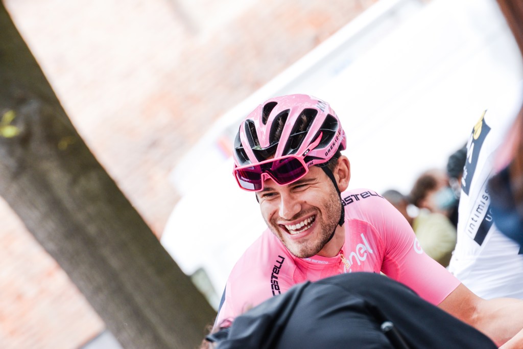 Il suo compagno di squadra gli canta una canzone in italiano e così finisce il giorno. Con le nuvole a strati che coprono il sole, il resto del mondo che torna a casa per cena, pensando che il turno del lunedì farà meno schifo se avranno la foto di Ganna in maglia rosa da far vedere ai colleghi.