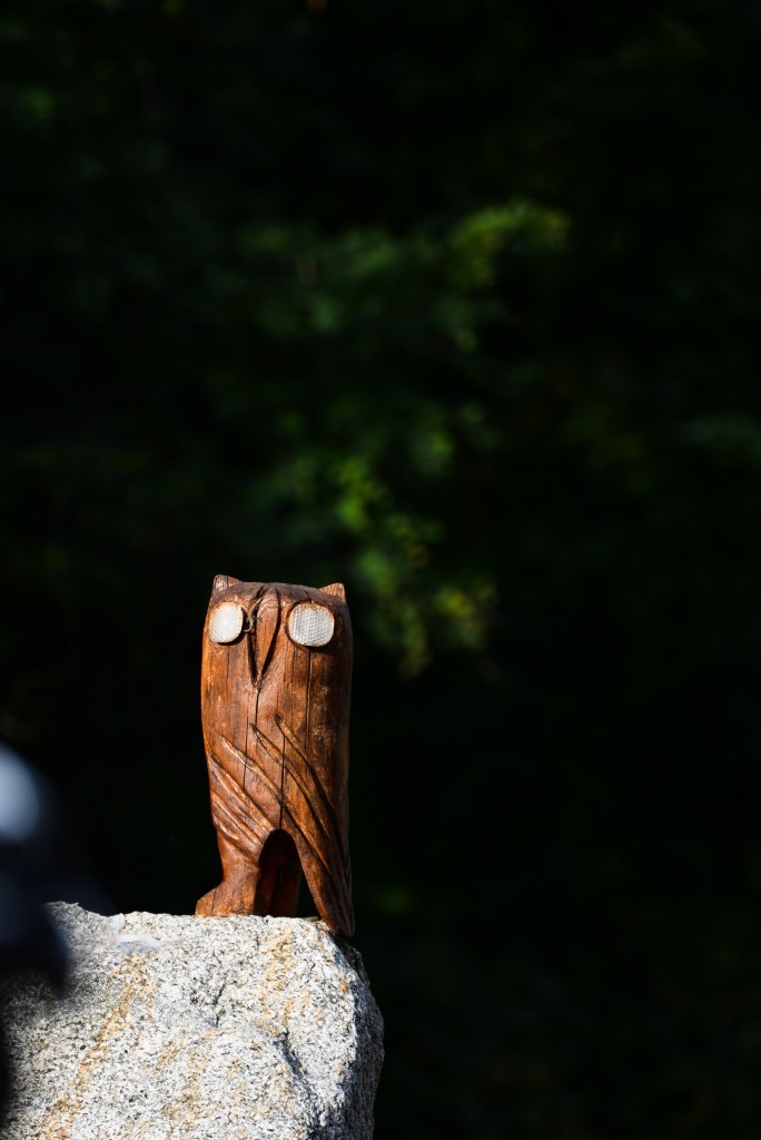 Sulla salita si mescola la gente in bicicletta ai tipi con il maglione blu e la camicia evasi da chissà quale ufficio. Tutti fanno grandi discorsi sul pacco pignoni mentre le statue degli animali del bosco li guardano curiosi con i loro occhi di legno. Probabilmente non sono abituati a tutto questo, stanno solo aspettando pazientemente che torni a scendere il silenzio della sera autunnale per parlare tra di loro di quanto sono assurdi gli uomini. Che non sono capaci di sentire davvero quello che il vento ha da dirgli, che non sono capaci di sentire la paura o la felicità a chilometri di distanza, che non sanno vedere al buio.