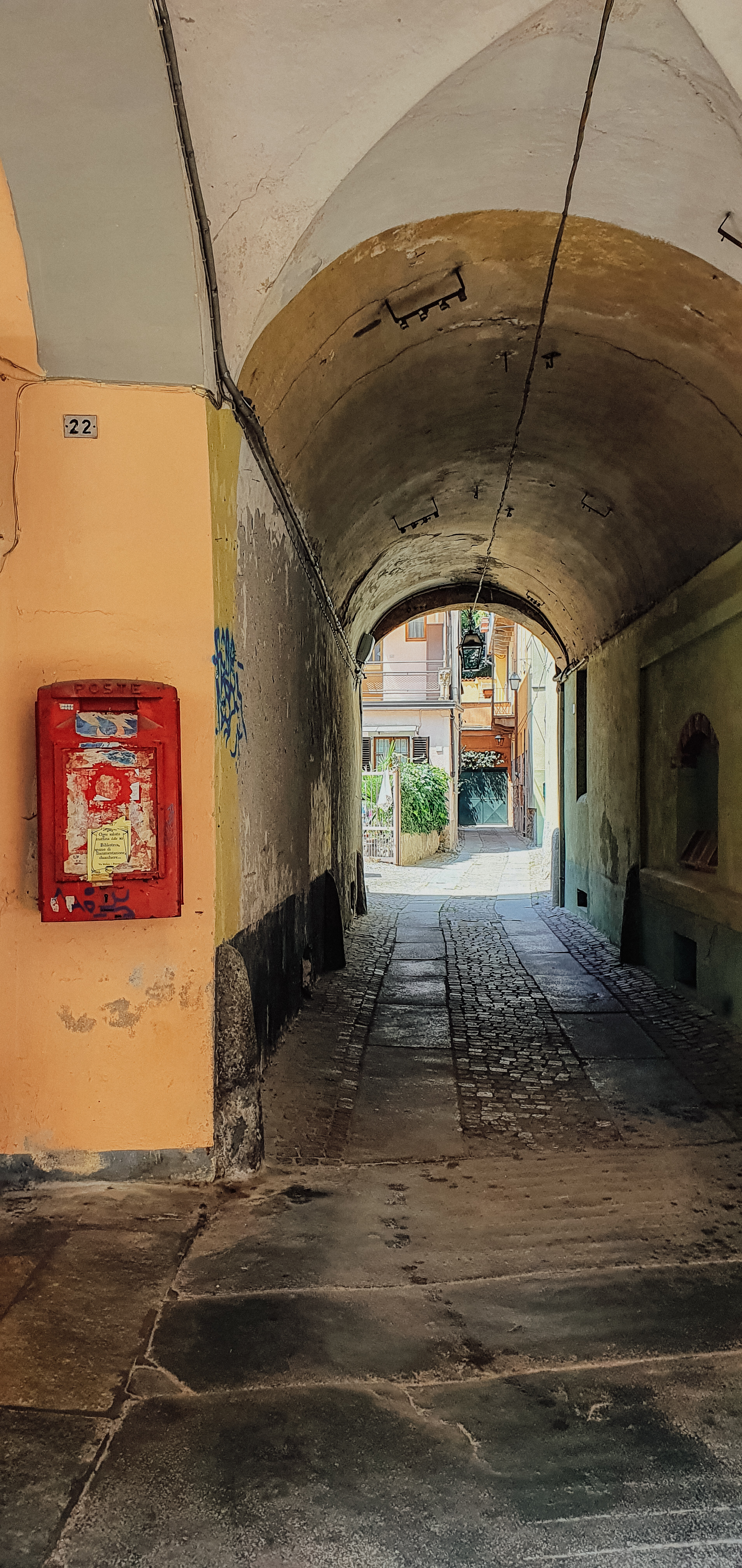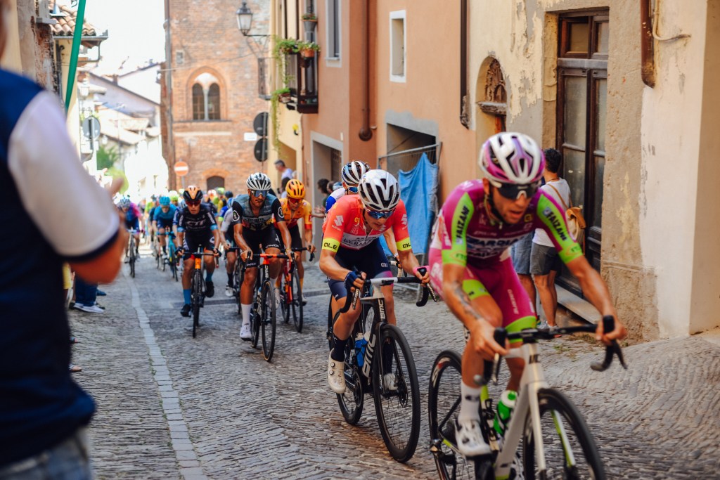 Pinerolo me lo ricordo come un dritto rettiineo dal Giro 2019, tre settimane frenetiche in cui avrei voluto essere altrove per tutto il tempo. Ma oggi è diverso, anche la mia testa lo è. Adesso questo paese è un intrico di vie sabaude dove ancora sopravvivono le antiche insegne dei negozi sotto i portici solenni dei quali, di tanto in tanto, si aprono pertugi che portano a cortili nascosti. Gli ultimi trecento metri verso l’arrivo sono una rampa tritagambe con il pavé a lisca di pesce che ricorda vagamente quello del Geraardsbergen. Anche qui sopra c’è una chiesa, però le case alte ed addossate alla strada stretta mi fanno pensare alle tappe della Vuelta in Andalucia. Tutto si fonde nella mia testa: quello che ho vissuto e quello che sto vivendo, in una specie di rotolo scritto freneticamente che raccoglie tutte le sensazioni. Come se qualcuno ogni tanto si divertisse a scombinare i cassetti della testa e a buttare tutto fuori come fanno i carabinieri quando hanno un mandato di perquisizione.