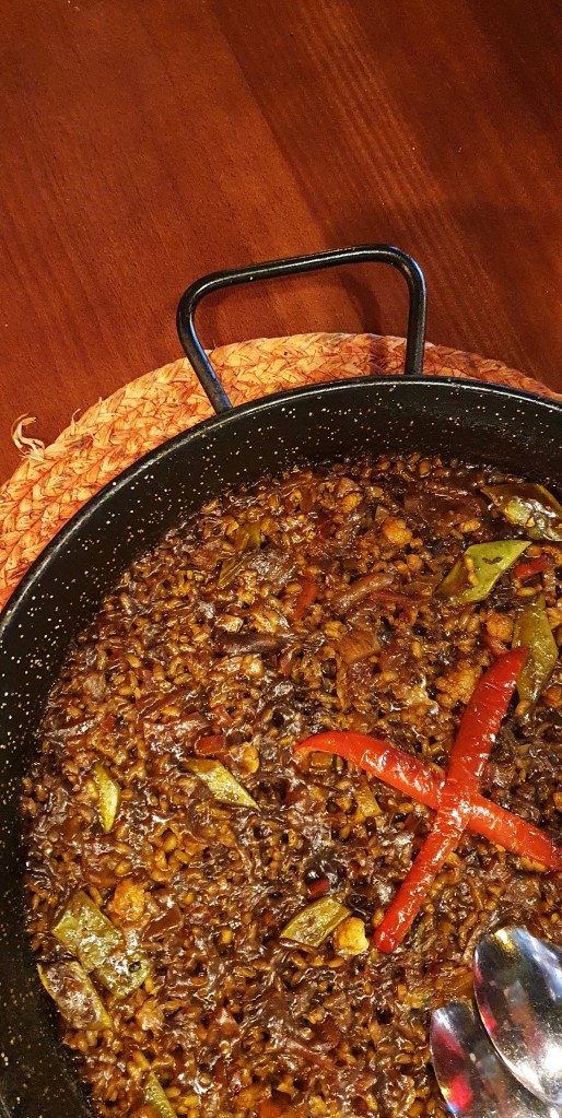 Ci portano un pane gigante caldo all’aglio con due tipi di salse, una gelatina di pomodoro che sembra una torta, l’insalata russa e…i buñuelos de bacalao per il quale – in modo totalmente inaspettato – il mio corpo inizia a sviluppare una assurda dipendenza. Poi è il turno di una pentola di arroz con carne e verdura per me e il tanto desiderato Fideuà de marisco per Iraia – un piatto tipico valenciano che consiste in pasta in brodo di pesce preparato generalmente con rana pescatrice e frutti di mare. Naturalmente i dolci sono tutti derivati da creme caramel o cose del genere e hanno un tasso zuccherino folle. Li mangio lo stesso perché bisogna sempre ricordare che, durante questi viaggi, non puoi mai sapere quando il tuo corpo potrà assumere di nuovo calorie.