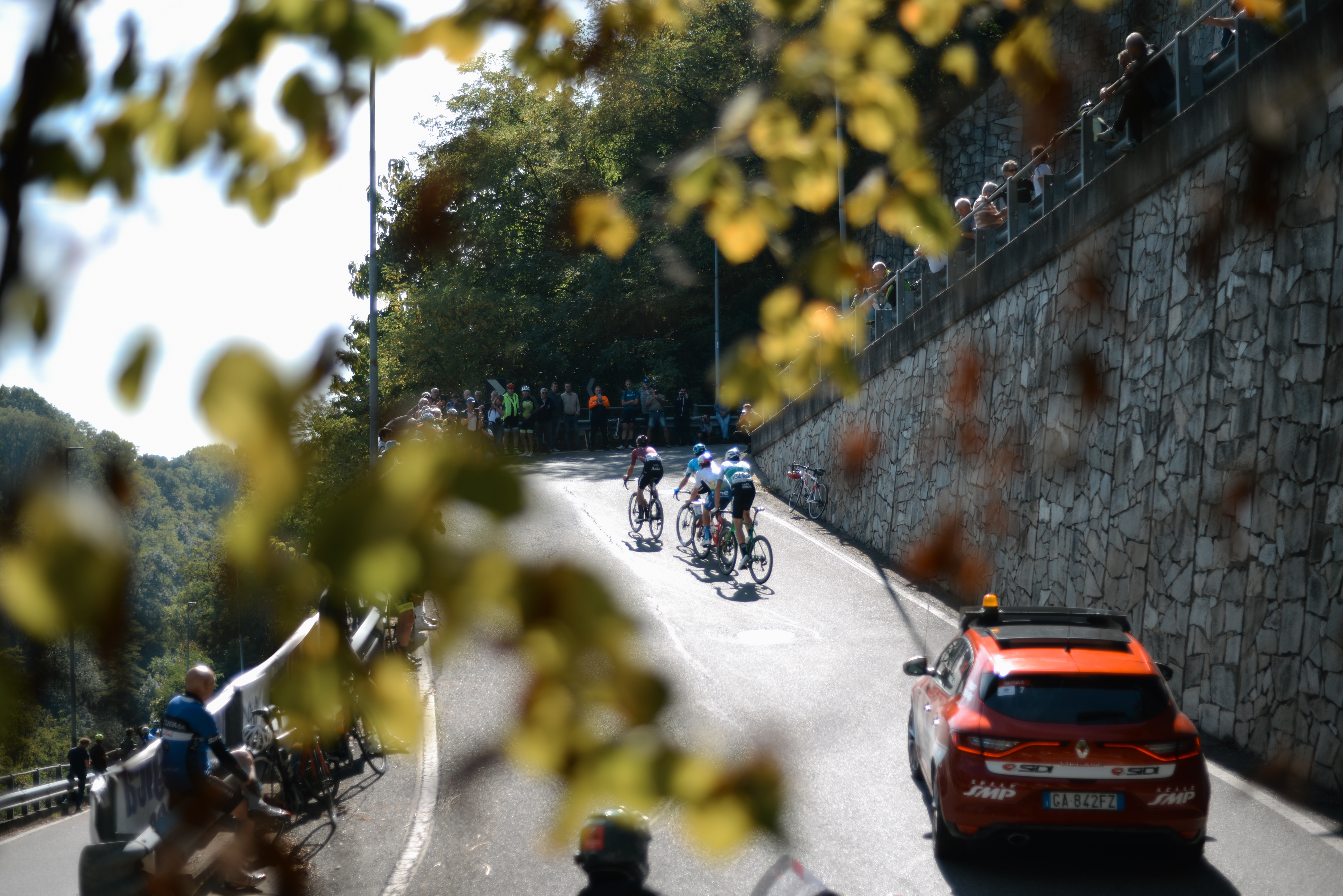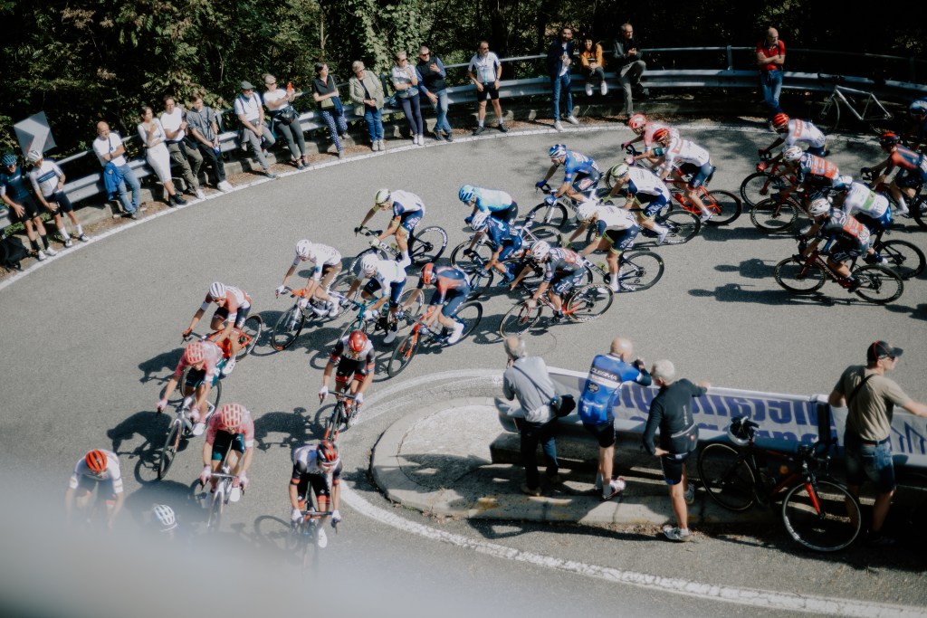 Il Piccolo Stelvio ha poco a che vedere con quello originale: pareti di pietra che si ergono sopra i tornanti dall’assoluto nulla, circondati dalle vecchie case che emergono dai boschi di qui che fanno pensare ai Fratelli Grimm o qualcosa del genere. Pensi sempre che dietro le porte di legno erose dal tempo ci siano nascosti segreti o delitti. Ma ai corridori non gliene frega niente di queste cose, sopra, nel piccolo agglomerato di case, c’è una via che si chiama Delle Madonne ed è esattamente così che funziona, quando arrivi in cima vuoi solo bestemmiare. Ma allora perché tutto questo dolore? Ognuno si purifica come può, ognuno dimentica come può.