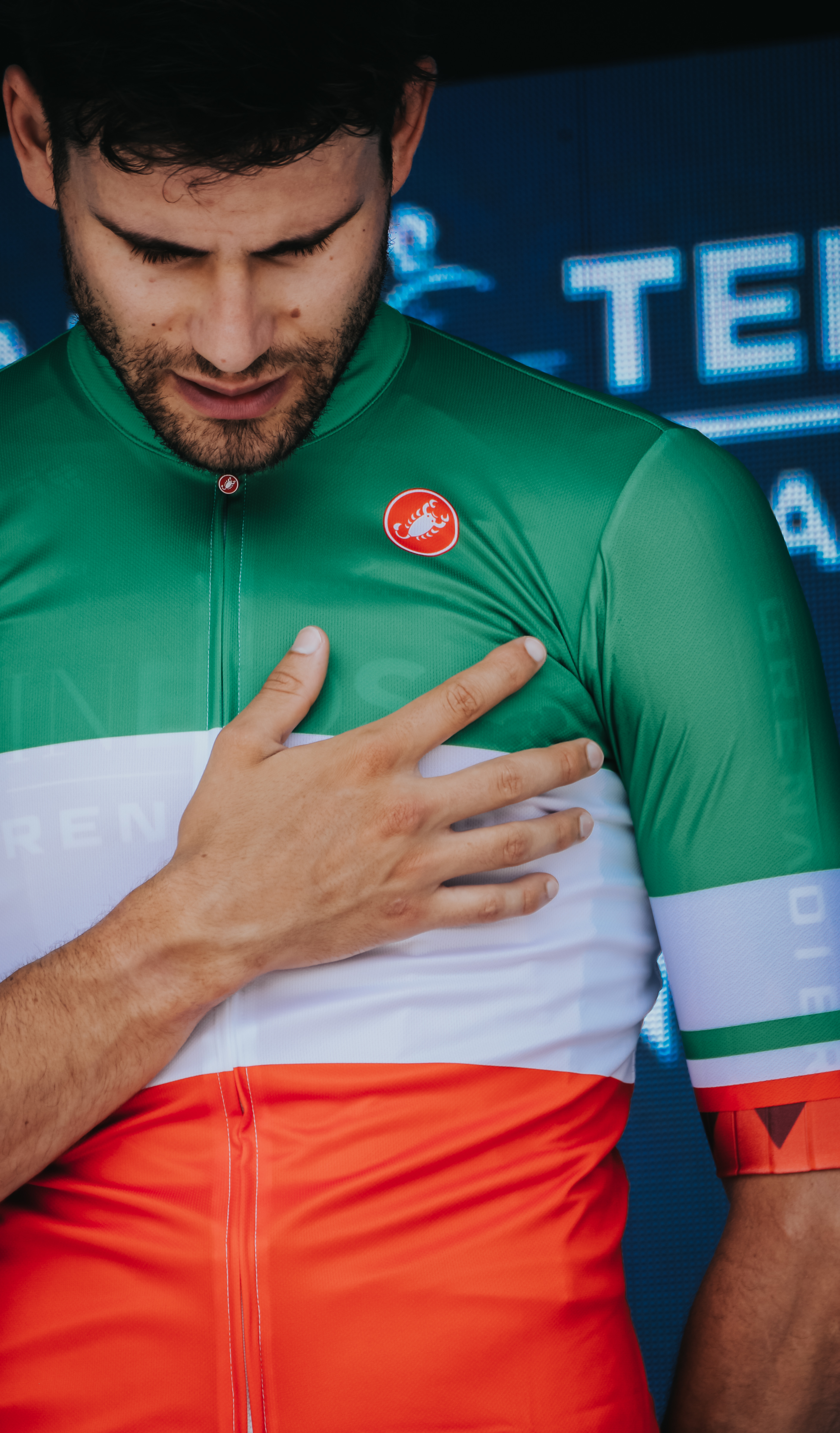 È solo in quell’attimo prima di asciugarsi il sudore, mentre Filippo si mette la mano sul cuore come se volesse strapparselo via, che penso a quanto il ciclismo sia un mucchio di intensi momenti vissuti in segreto, costellazioni invisibili che sono fatte per un solo spettatore. Il resto è fuori.