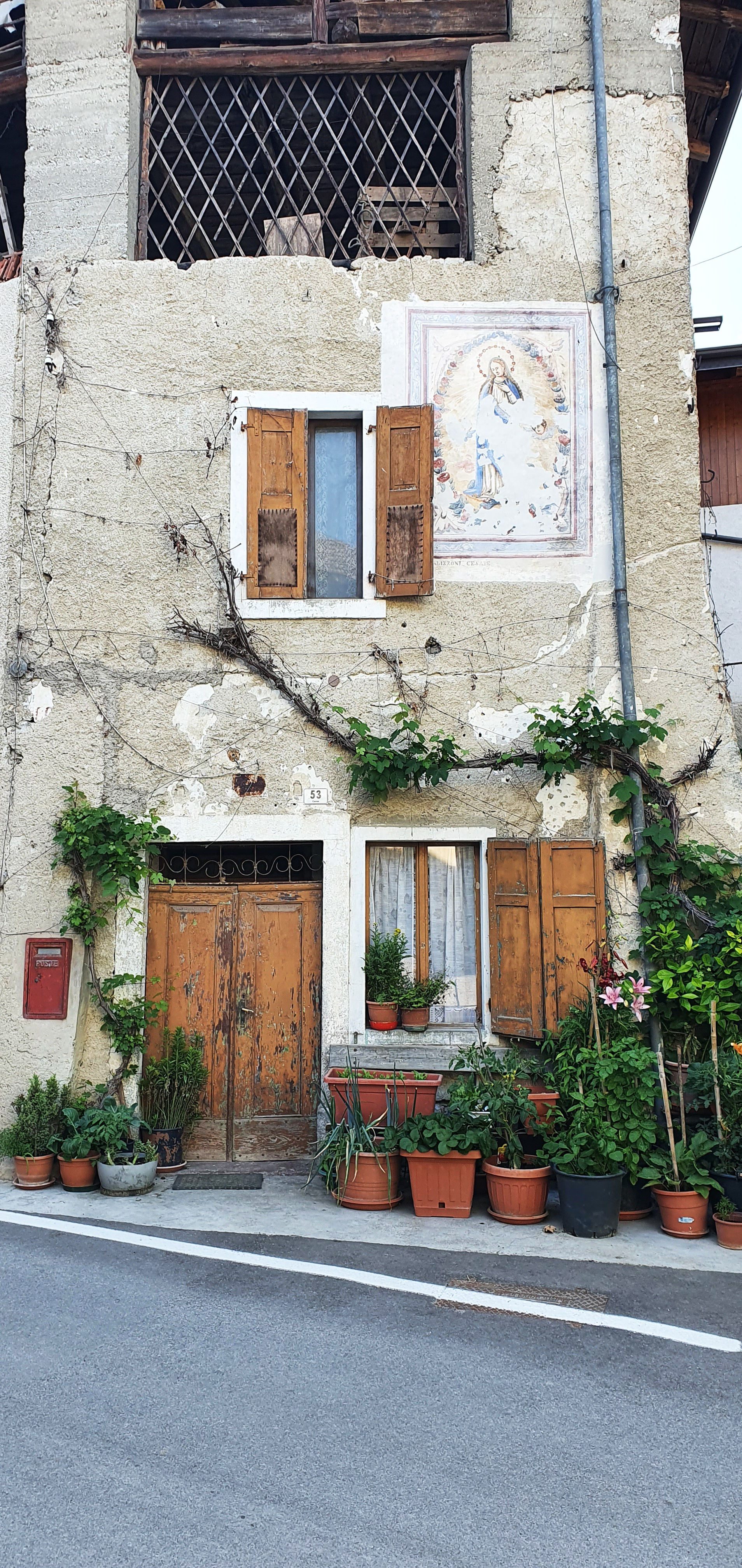 Quando arriviamo al B&B, io e la Vale siamo bollite per la giornata a bagnomaria nei vigneti dove nemmeno un filo d’ombra concedeva tregua dal mezzogiorno rovente – tutto molto tipico, quando si parla di Campionati Italiani. Mentre aspettiamo che la tipa arrivi ad aprirci, noto che il posto è pieno di cose strane dal probabile significato mistico – o forse no – un Buddha, ferri di cavallo, una campana a vento fatta con delle perline di plastica e una statuetta di un lupo. Effettivamente questo sembra il classico posto di montagna dove si riuniscono le streghe: le cantine aperte sembrano antri oscuri, su una facciata con le porte di legno si arrampica l’edera attorno ad una Madonna scrostata e un’infinità di piante apparentemente governate da nessuno che semplicemente hanno trovato il loro posto di pace in quell’angolo d’ombra.