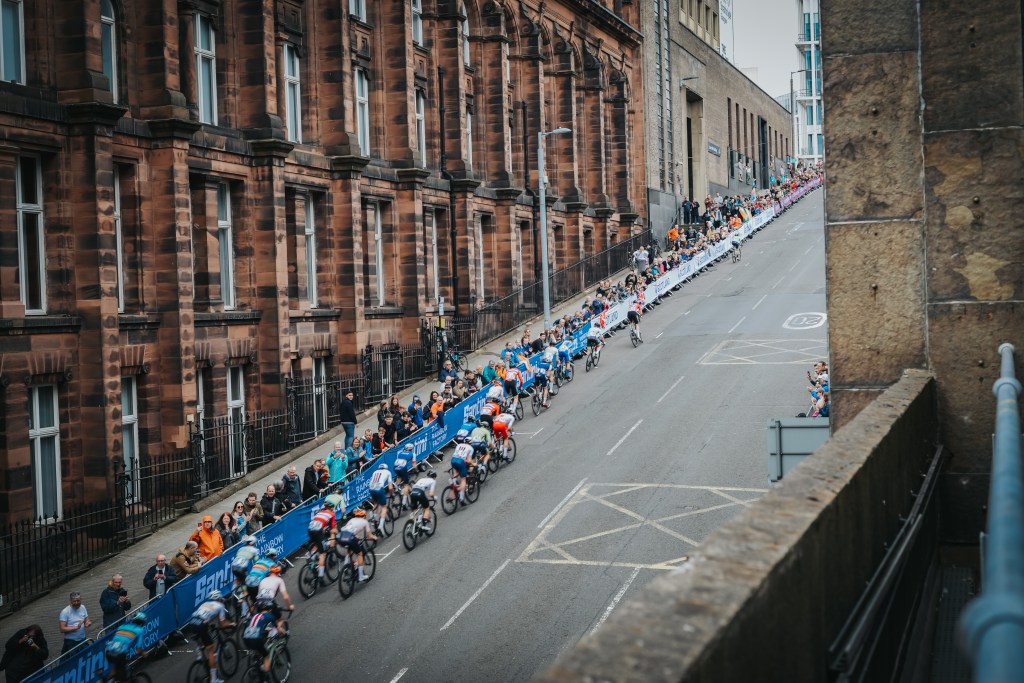 Glasgow di scozzese ha veramente poco. Le pareti di arenaria rossa dei palazzi vittoriani fanno pensare piuttosto a una Montreal di fine ottocento, con i vicoli umidi, stretti, bui e decadenti dove la gente si ferma a vomitare. I grandi palazzi grigi del -quasi – nostro tempo e le gru fanno il resto, disegnando il circuito del Mondiale più assurdo della storia, dove tutti devono fare tutto ma non c’è tempo per niente perché le gare si sovrappongono come pancakes, una sopra l’altra.