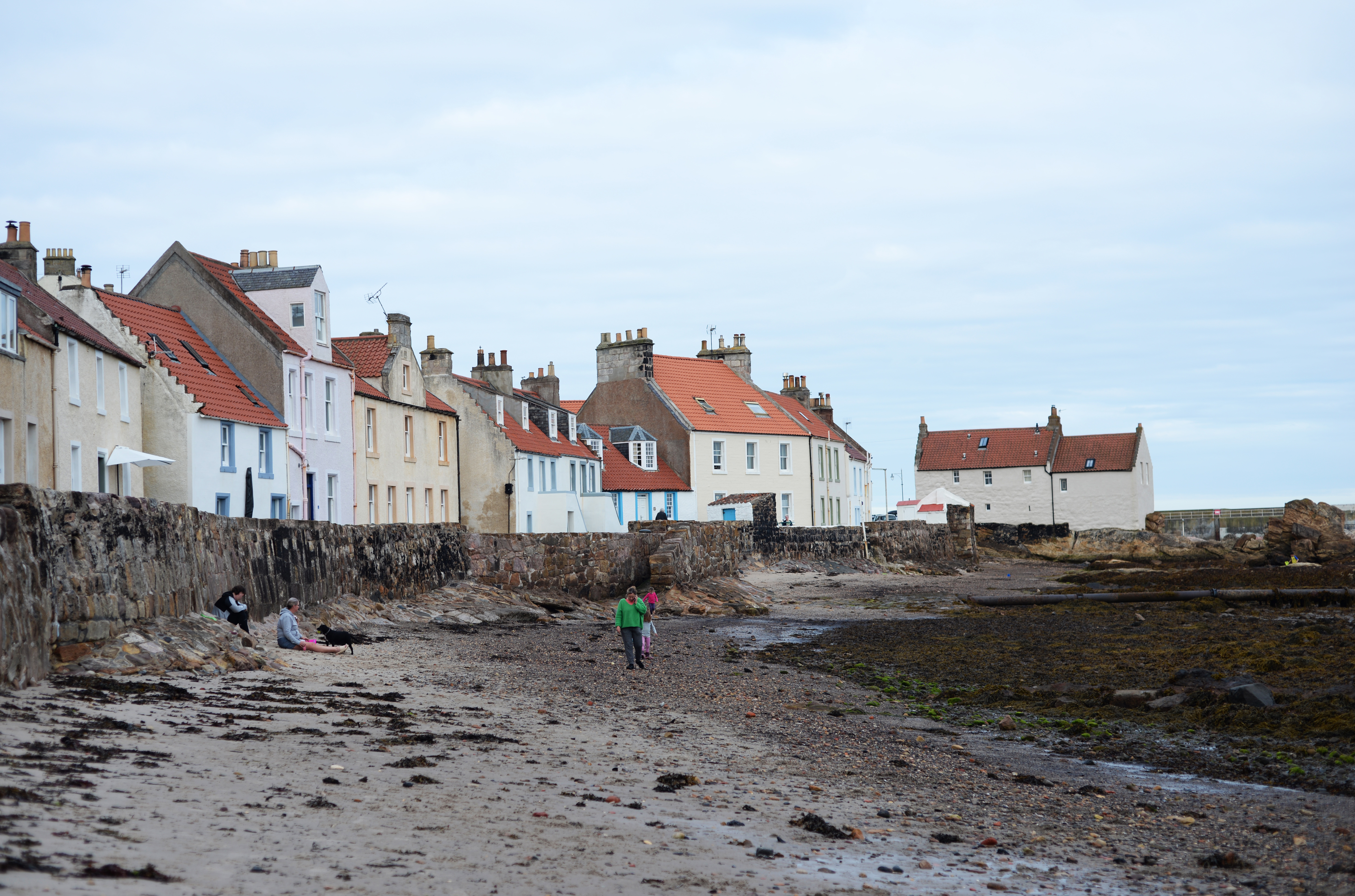 Sulla spiaggia di Elie i bambini corrono a maniche corte giocando con la sabbia e guardando i piccoli molluschi qua e là mentre i colori tenui del tardo pomeriggio assomigliano a quelli di certe vedute settecentesche ad acquerello dove la tranquillità si mescola alla malinconia. A cinque minuti da qui c’è St. Monans, più cupo e oscuro, grazie alle nuvole grigie che si sono accumulate all’orizzonte e che rendono il villaggio una location perfetta per un libro di Elisabeth Gaskell, specialmente quando ci si spinge verso la chiesa medievale con il cimitero tutto intorno che si erge a strapiombo sul mare, in balia dei venti inclementi. In questa giornata d’agosto che sembra novembre è impossibile non immaginare una ragazza guardare l’orizzonte, in attesa di una nave.