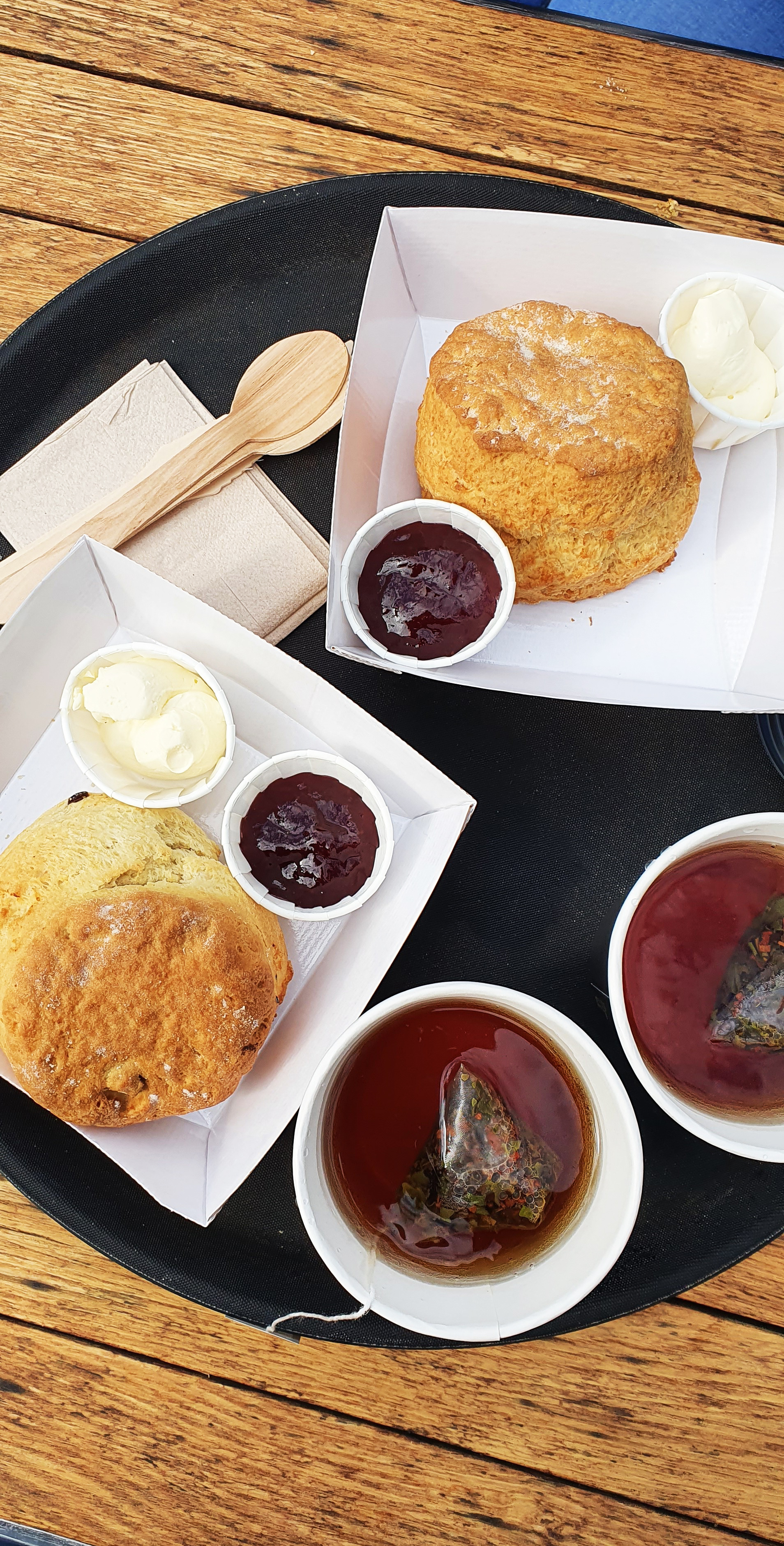 Per fare una pausa prendiamo un tè e il primo scone in assoluto da quando abbiamo messo piede in Scozia che, a dire la verità, è abbastanza sotto le aspettative. In genere sono paninetti che vengono serviti all’ora del tè – appunto – con marmellata e quella cosa chiamata “clotted cream” che potrei mangiare a tutte le ore del giorno, letteralmente.