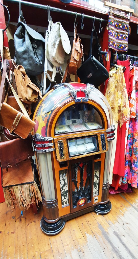 Manca mezz’ora alla cena ed improvvisamente si apre un’altra porta spazio temporale, proprio mentre varchiamo per caso la soglia di un negozio vintage che sembra più il dietro le quinte di una tenda di un circo con un mix assurdo e incantato di straordinari abiti di scena, kilt tradizionali ed eleganti vestiti Chanel degli anni Sessanta.
