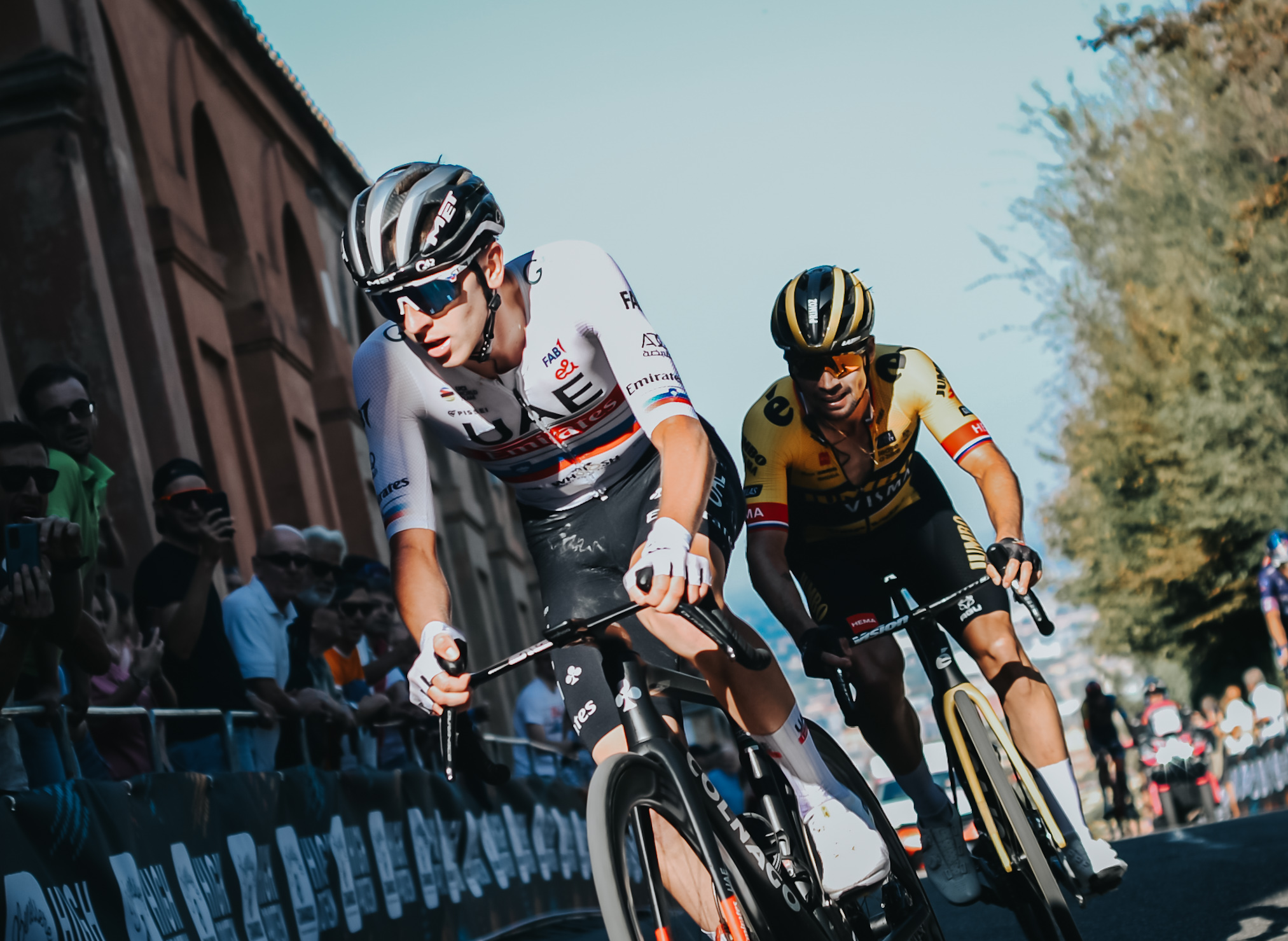 Così i porticati che costeggiano la corsa incidono i corridori tra sole e buio, lame che tagliano in due come le pendenze fanno con le gambe. Ci sono legami tra uomini e luoghi che sono fatti per restare, come quello tra Roglic e il San Luca che lo fa vincere secco, come se fosse già scritto dal chilometro zero. Basta, è sua, punto. E lui felice come un bambino con la sua mega mortadella sottobraccio. Nessuno sa perché gli piaccia così tanto, forse sarà legata a un ricordo: un’immagine possiamo dimenticarcela ma un sapore no. Quello amaro e croccante della polvere sul Carrefour in una giornata di vento o quello dolce e caramelloso di una torta sfornata. Colpire a fondo, ecco cosa.