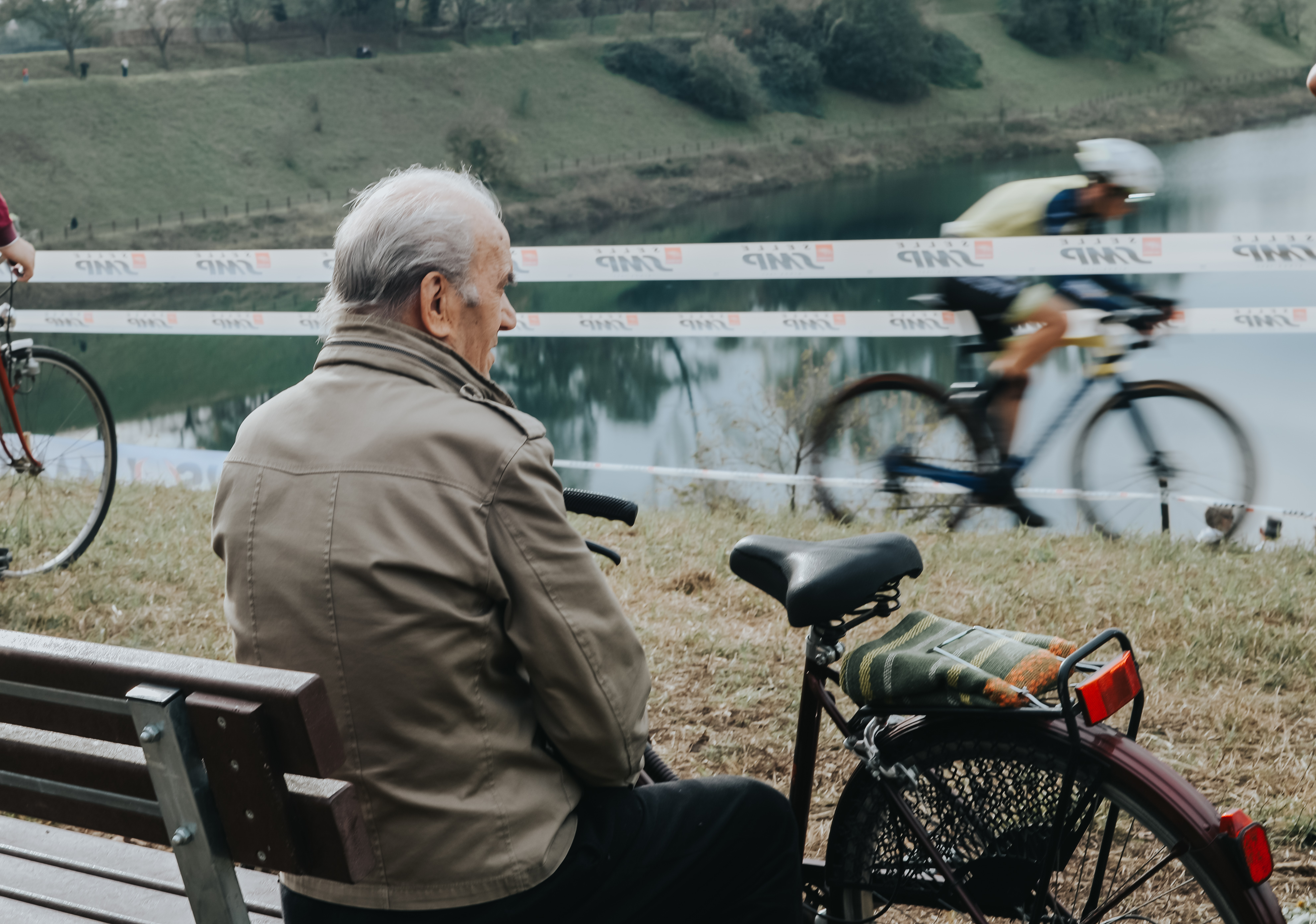 Un tipo con la sua bicicletta guarda attento l’inseguimento pressoché impossibile, ha una coperta di lana ripiegata a regola d’arte nel portapacchi, forse non la usa da anni ma non si sa mai, nessuno può sapere quando scenderà il gelo di nuovo. Chi può sapere quando avremo ancora bisogno di sentirci al sicuro?