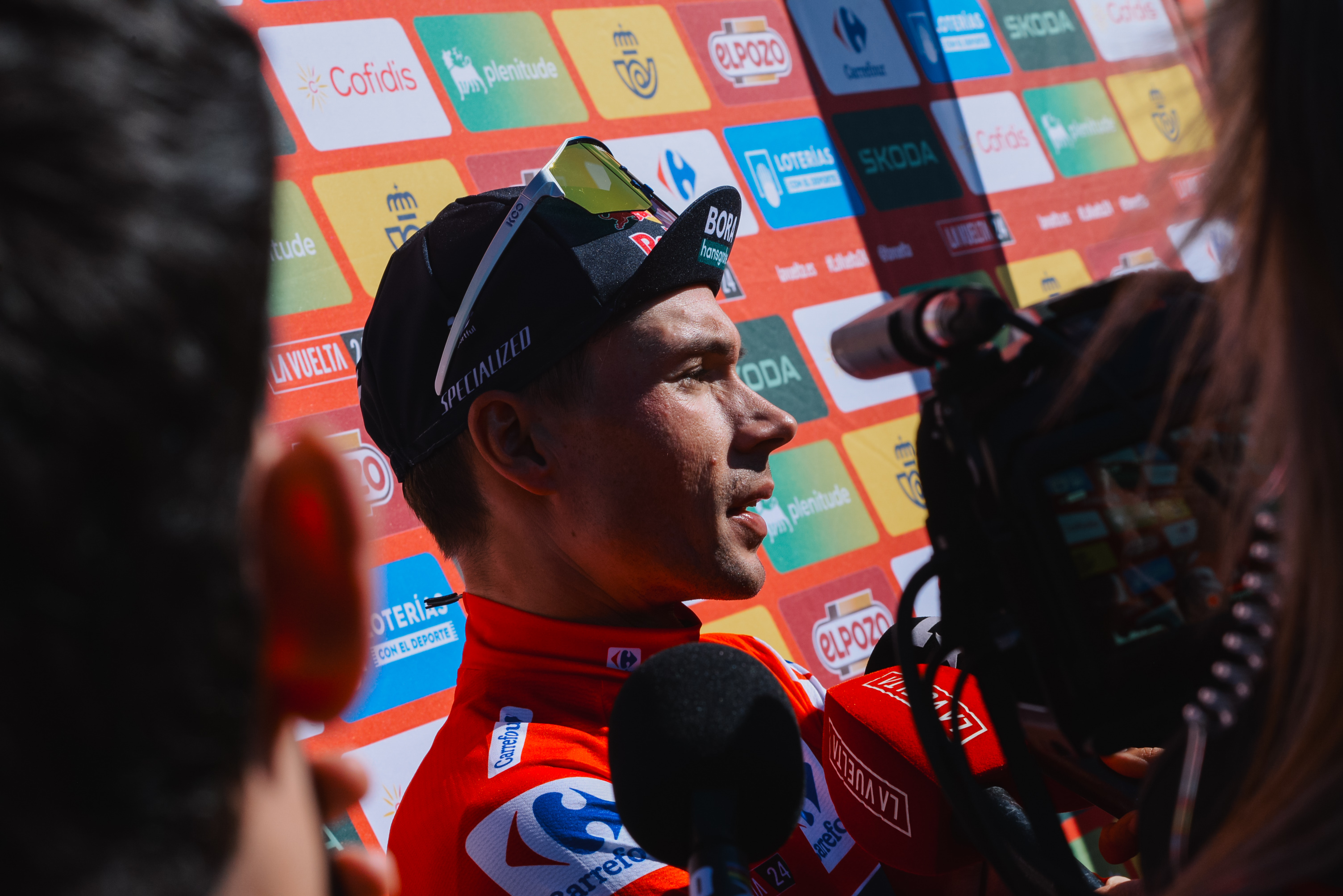 La salita è un’agonia di rampe tra la luce e l’ombra e poi una scalata verso il sole pieno come quando vedi la salvezza in fondo al tunnel ma non sai esattamente se è il paradiso o un treno che ti viene addosso. Questo è un santuario per Primoz Roglic che probabilmente nella sua testa ha già pensato a fare il suo colpo di teatro in un posto che già conosce come sé stesso. Come una previsione di un veggente, lui è da solo negli ultimi sei chilometri che portano alla vetta. Caccia la rossa proteso in avanti, come è sempre stato visto a La Vuelta. Attaccare sulle salite peggiori. Più dolore, più sofferenza, più sangue che pompa al cuore. Ancora.