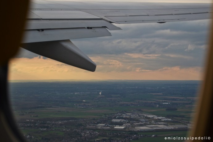 Le nuvole sia ammassano sull’ azzurro come zucchero filato. Dai vetri dell’aeroporto il cielo e la pista sembrano ancora più grandi e stranamente gli aerei più piccoli. Sembra che quei vetri separino il mondo frenetico di qui, di gente che va e viene e il deserto di cemento là fuori dove gli aerei arrivano e…