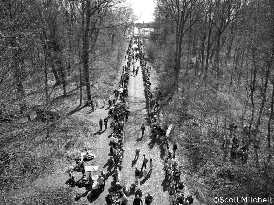 White like the double line after the circuit’s lap. The bell that tells the end. The sun in the eyes. The mute scream of Dege that at twenty-six years old has got his Paris Roubaix.