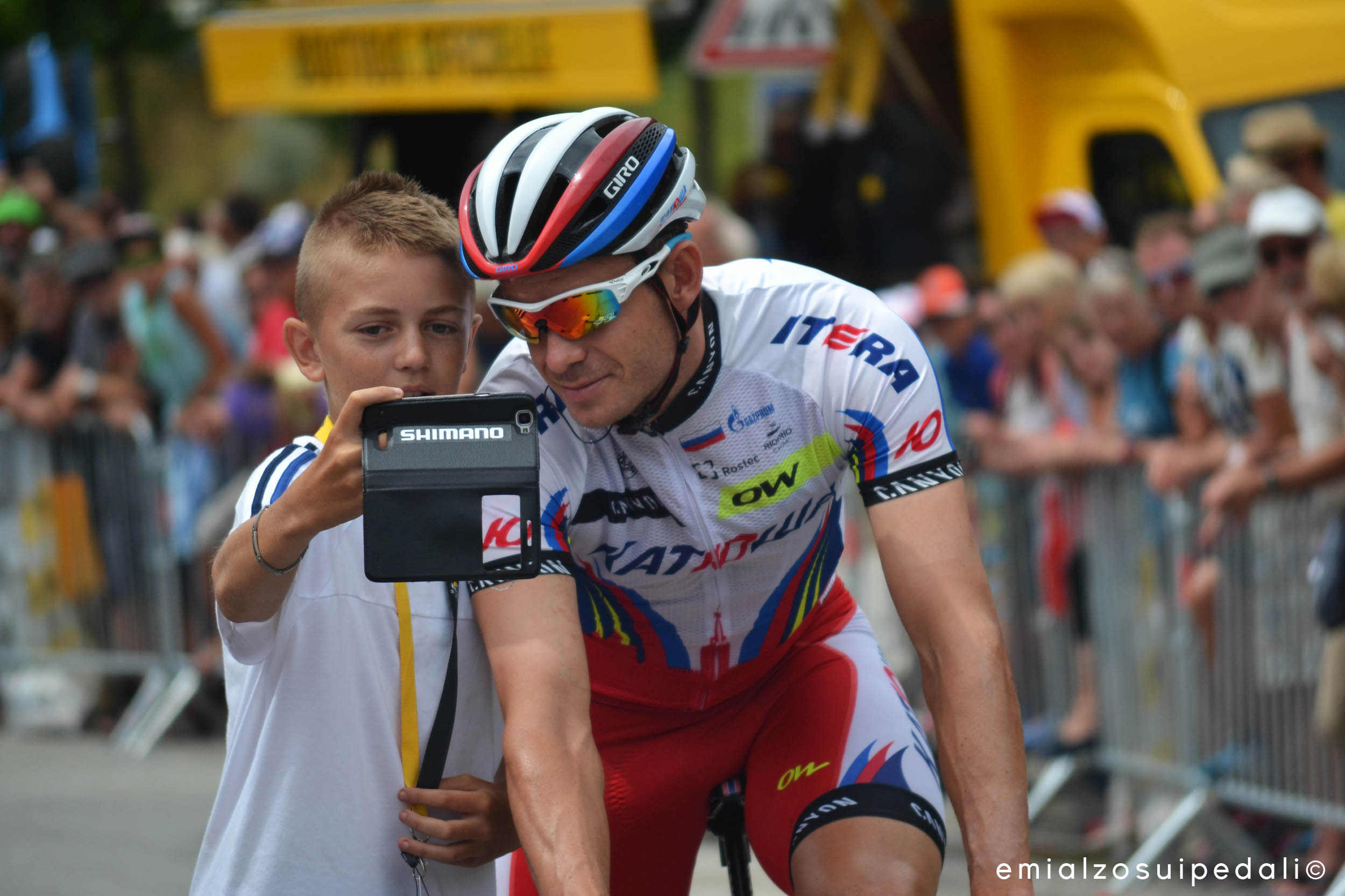 The cyclists go towards the signature, people greet them, they scream the names and the athletes smile, they greet back, they give their hands to the children that stick out from the barrier. A guy asks for a selfie to everyone, even Kristoff stops. He devotes some of his time. This is something that makes the cycling big.