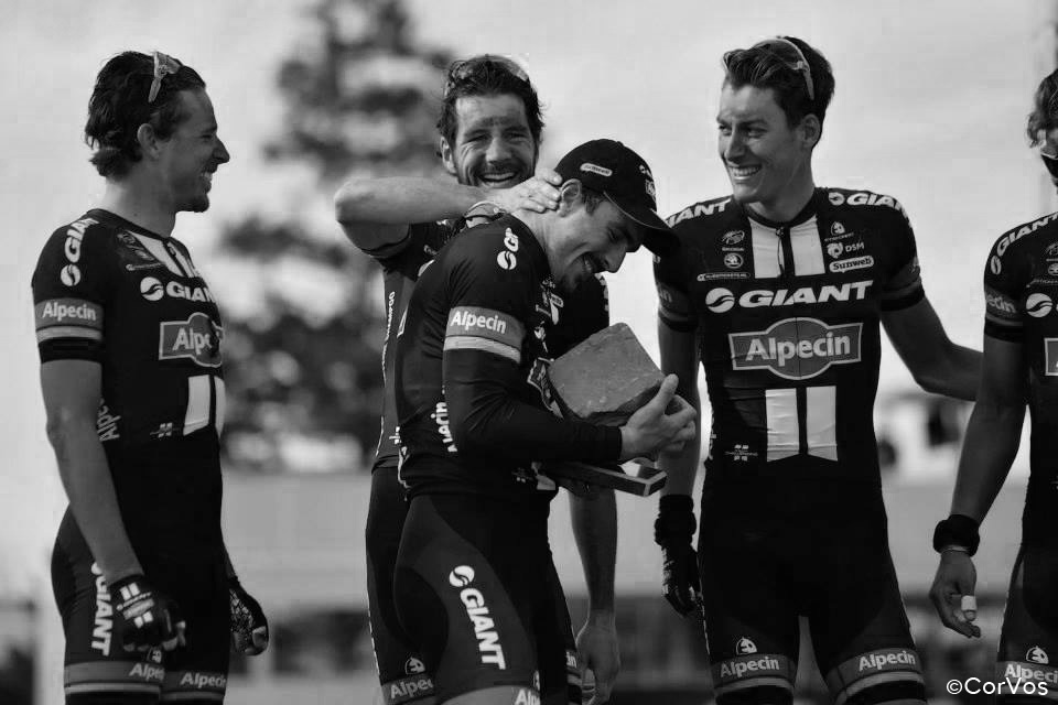 He gives his son a flick, he takes off the helmet, he takes his face among the hands. It is not the same feeling of a few weeks ago. None is the same as itself. Maybe this one is different. Maybe he doesn’t even know why. Victories are like sons, you love them all indistinctly even if everyone has his own character. The Roubaix is evil and undisciplined nevertheless it resembles to one of those wild horses that everybody would ride to say that they have made a pact with freedom. White is this light that wraps the velodrome in the afternoon. White the smiles of the Giant’s guys that arrive one by one with the face of dust. Black is the invisible bitter of delusions that gather behind a happy Dege. Greg again on the podium but no highest step, with his kind and stern expression at the same time, the disappointed eyes, maybe incredulous for those lost metres. Greg who’s always stayed with the best ones, on the pavè that made the open elbows shake, the arms on the handlebars.